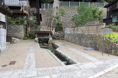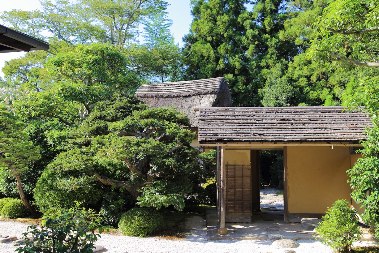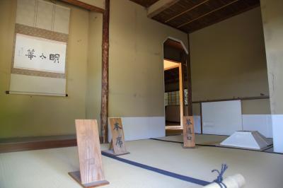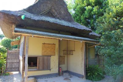 こちらの茶室は松平不昧公が家老のために建てたものです。受付を抜け、露地門を潜ると路地と待合、茶室が小ぢんまりと纏まっています。茶室の建築には色々と様式があるようですが、こちらは不昧公独自の設計のようです。建築様式についての良し悪しは判りませんが、厚い藁葺き屋根が印象的で、文化都市松江に似合わず田舎風で素朴、という感じを受けました。ただ、塩見縄手の洗練された武家屋敷と対比するよう、意図的にこういう風にしたのかな、とも思います。
