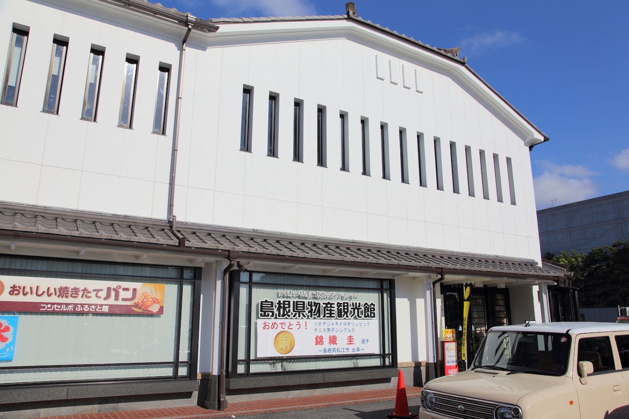 松江城の大手前駐車場の、道を挟んで向かいある施設です。白壁の建物なので、見た目は美術館や博物館と勘違いしそうですが、中に入ると土産物が所狭しと並んでいます。
