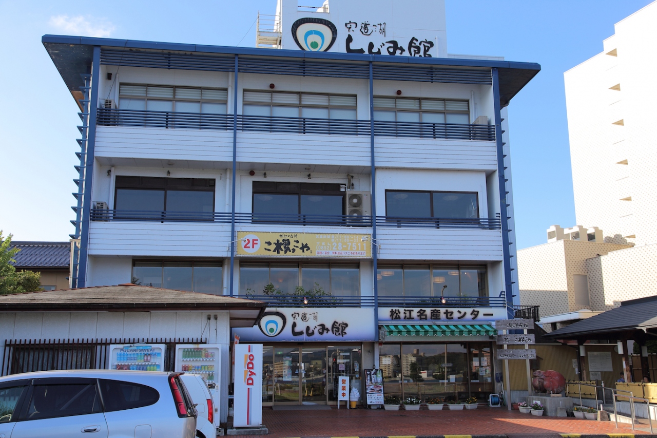 宍道湖に面した温泉街の中にあるしじみの博物館兼販売所です。最寄のバス停はレイクラインの千鳥町か千鳥南公園です。松江しんじ湖温泉駅からは歩いて5分掛かりません。駅から宍道湖沿いの道に出て、西に向かって歩いていけば直ぐに着きます。ホテル一畑の西隣なので、迷うことは無いでしょう。