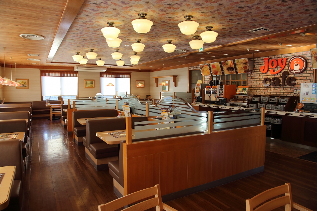 店内は他のジョイフルの店舗と変わりません。メニューも一緒で、松江や島根限定のメニューは無いようでした。こちらでは朝食セットを頼みましたが、オーソドックスなもので安心して食べられました。味も普通に美味しかったです。まぁ、観光目的で来る店ではありませんが、観光地の食事に飽きたらどうぞ。- 旅行時期