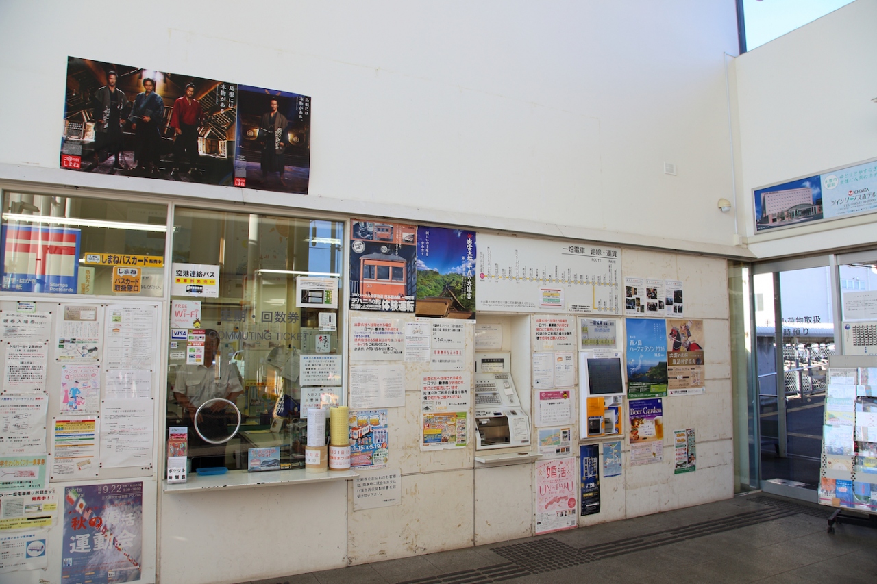 外見はガラス張りのお洒落な建物で、よくある田舎の私鉄を想像すると良い意味で裏切られます。駅構内には券売機や窓口の他、待合所、売店、トイレ、ロッカーなど、必要な設備は全て揃っています。ガラス張りになっている為、明るく、清潔な雰囲気です。駅前にはバスロータリーがあり、市営バスの他、一畑バスや高速バスも発着します。また、無料の足湯もありますし、レンタサイクルの貸し出しもやっているので、電車に乗らなくても観光の拠点として利用できます。- 旅行時期
