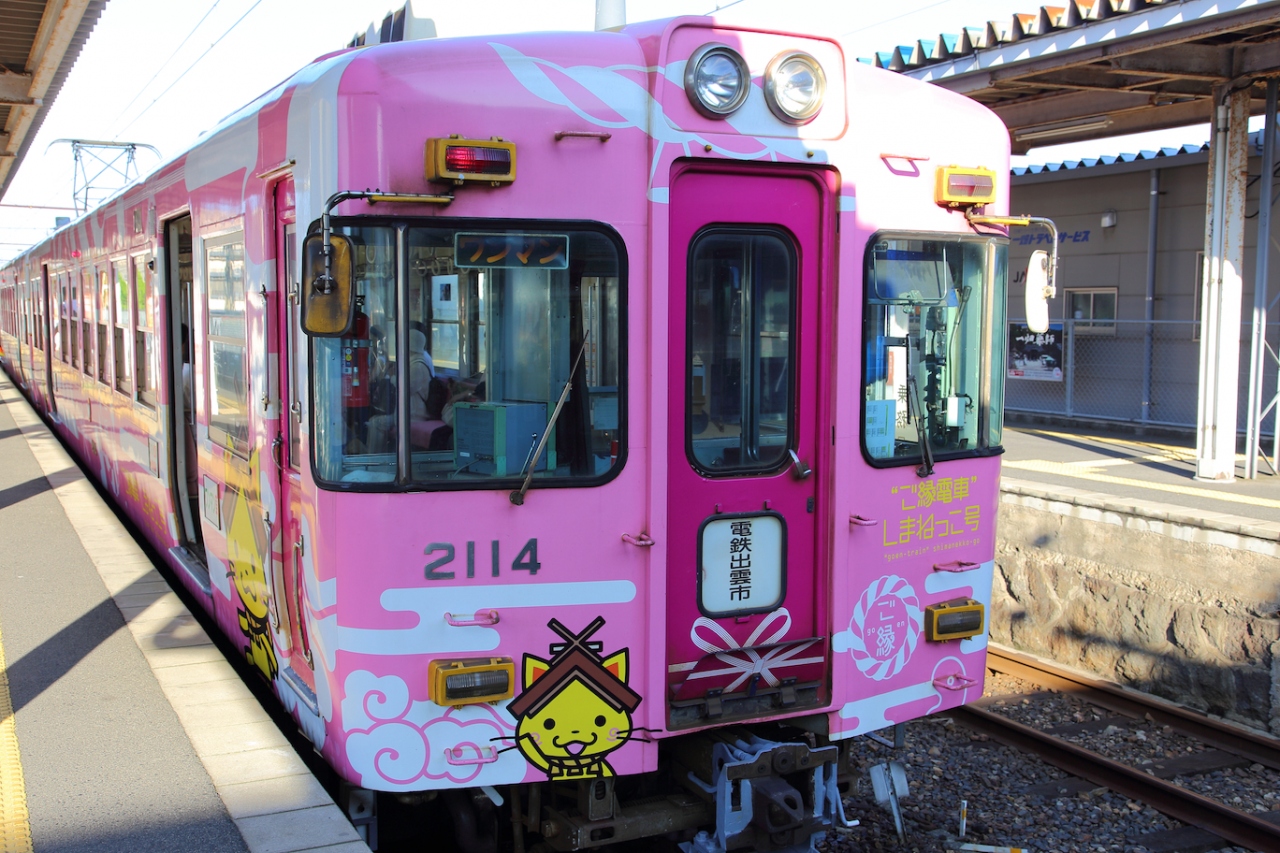 地方のローカル私鉄なので、車両は古いものが多いです。編成も2両編成です。ただ、観光で使うならそのような点を補って余りあります。車窓からは宍道湖が良く見えますし、途中駅からもイングリッシュガーデンや一畑薬師など、有名な観光地にいけます。追加料金を払えば自転車も乗せられるので、松江でレンタサイクルを借り、そのまま電車に乗せて沿線の観光をすることもできます。観光路線であることは一畑電車自体も認識しているようで、観光車両として島根のゆるキャラしまねっこをモチーフとしたしまねっこ号を走らせていて、大人気のようです。実際、2両編成の車両に乗り、宍道湖を眺めながら揺られていると、旅に出ていることを強く感じさせてくれます。松江と出雲を巡るなら、是非利用することをお勧めします。