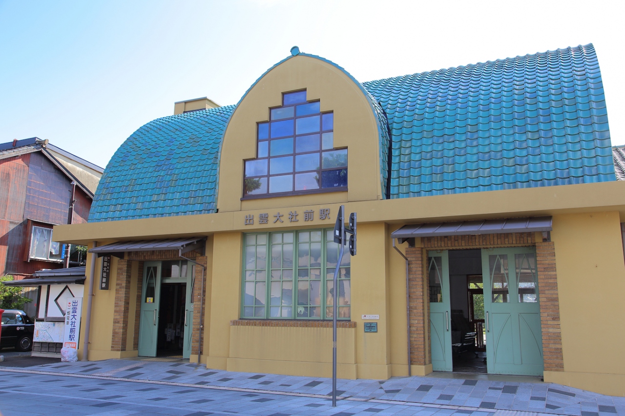 一畑電車の駅で、出雲大社に一番近い駅です。出雲大社門前の神門通りの中ほどにあります。JR出雲市駅は出雲大社からかなり離れているので、出雲大社に参拝するならこちらの駅を利用することをお勧めします。