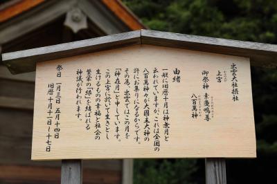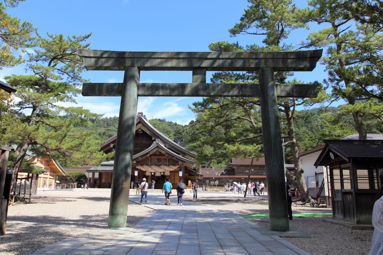 いまさら説明するまでも無い、日本有数の神社です。縁結びの神様として良く知られていますね。出雲大社前駅から神門通りを北(右手側)に真っ直ぐ進み、坂道を上っていけば勢溜と二の鳥居が見えてきます。誰でも映像で見たことのある光景だと思います。