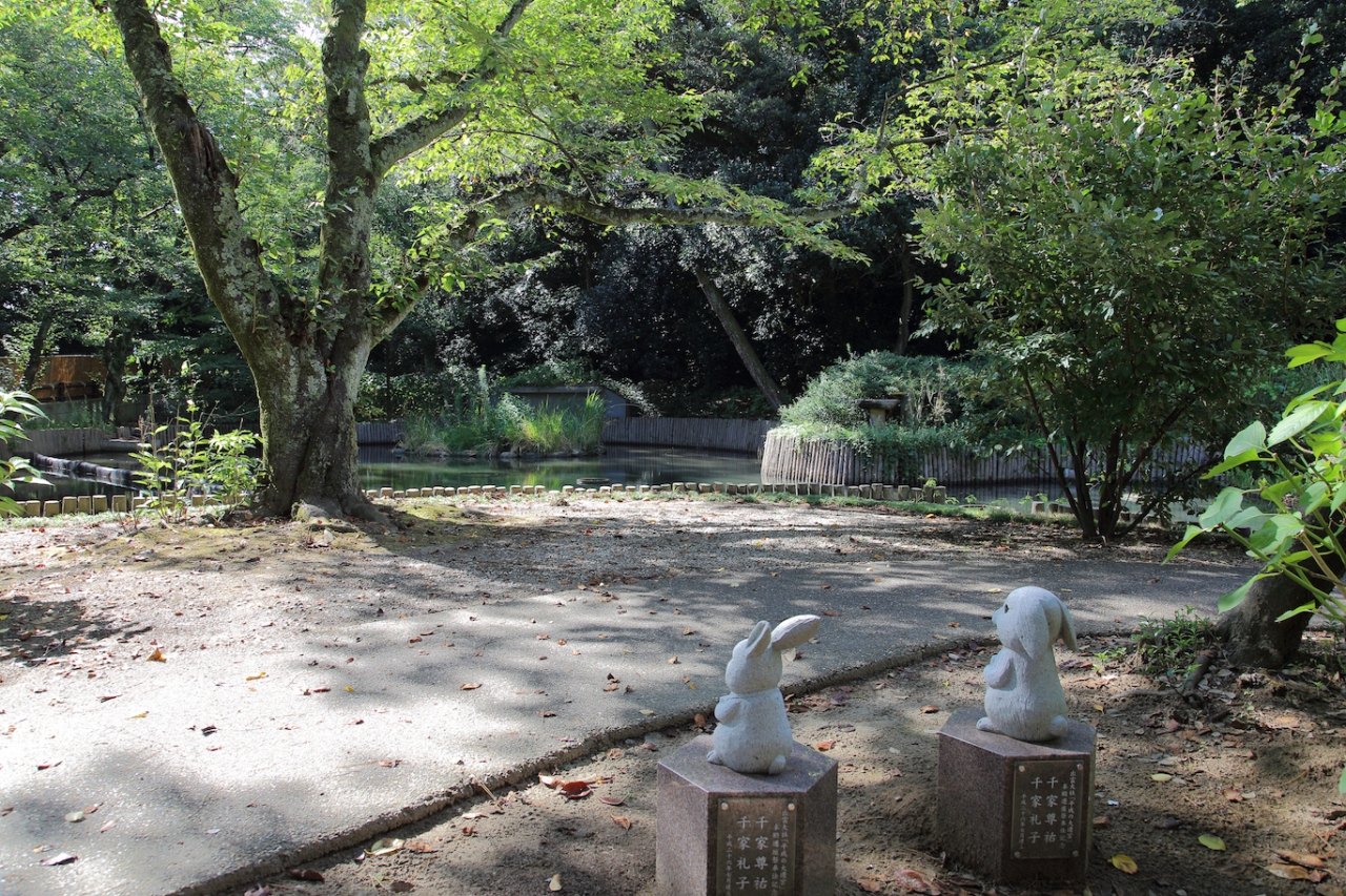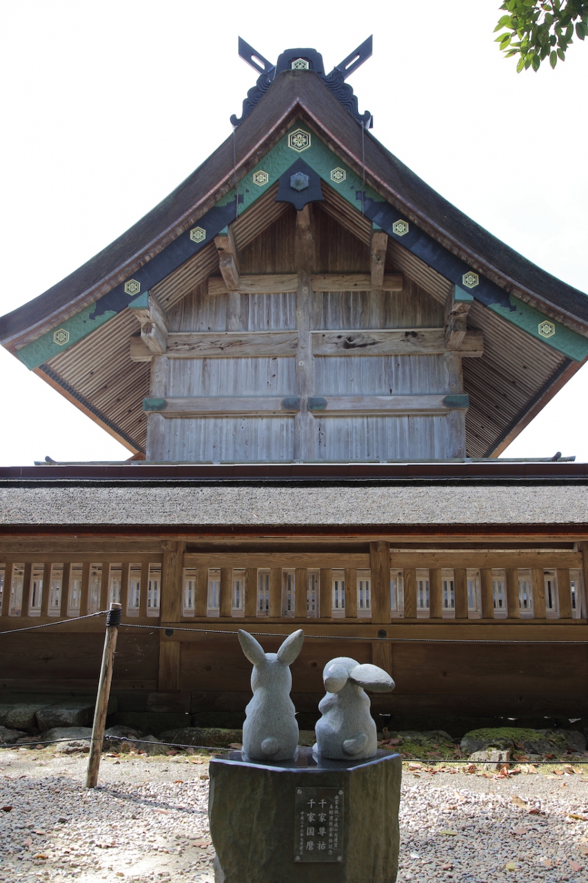 社殿は大変に立派です。神代の時代から建っている建物は1つもありませんが、歴史の重みを感じます。面白いのは、本殿の丁度真裏、素鷲社の真向かいにうさぎの像が幾つか置いてあるのですが、本殿に向かって拝んでいるものがあります。因幡の白兎が大国主命に、直して貰った御礼に拝んでいるようで、微笑ましかったです。