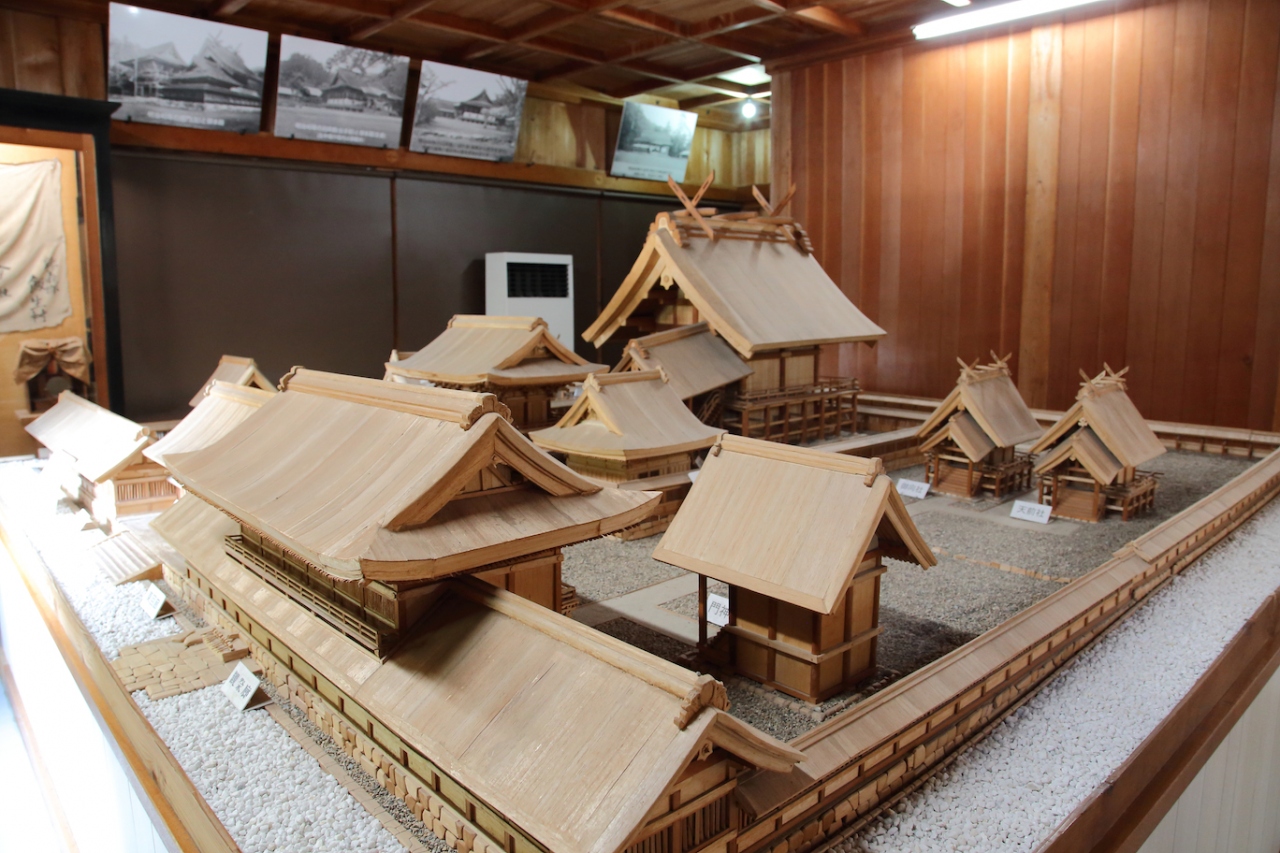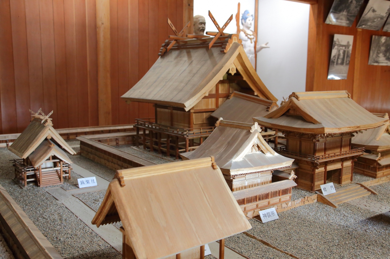 出雲大社の施設の1つです。ちょうど本殿の北西に位置しています。建物自体は大正時代に建てられたものだそうで、中々風格があります。2階建てになっていて、1階は大黒様、2階は社殿の模型や出雲大社縁の品が展示されています。また、こちらの展示は写真撮影自由です。拝観料200円にも関わらず、太っ腹です。