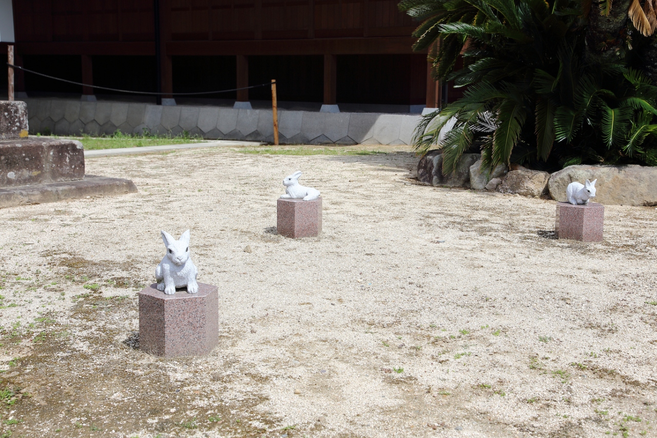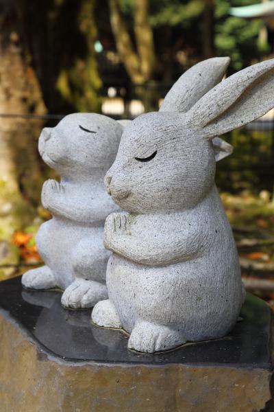 境内は広大で、あちこちに末社や摂社が置かれています。出雲出身と言われる野見宿禰の社もあります。また、境内のそこら中にうさぎの彫像が置かれているのが印象的です。大国主といえば因幡の白兎の故事が有名なので、それにあやかっているのでしょう。結構可愛らしいものが多いので、見ていると和みます。