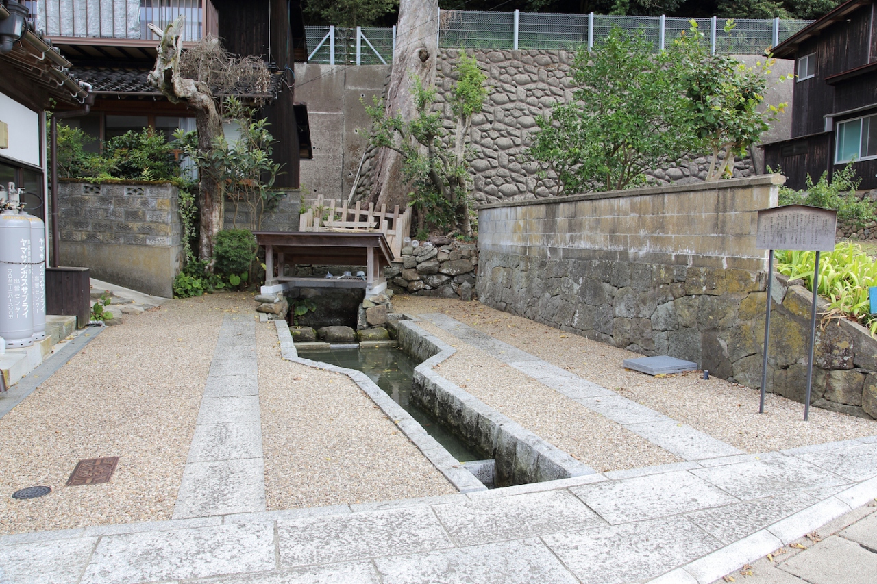 出雲大社の東側にある湧き水です。命主社の東側にあるので、出雲大社の手水舎の北側の道を東に真っ直ぐ進んでください。命主社の先に少し開けた場所があり、そこに流れているのが真名井の清水です。看板も出ていますので、直ぐに判るかと思います。