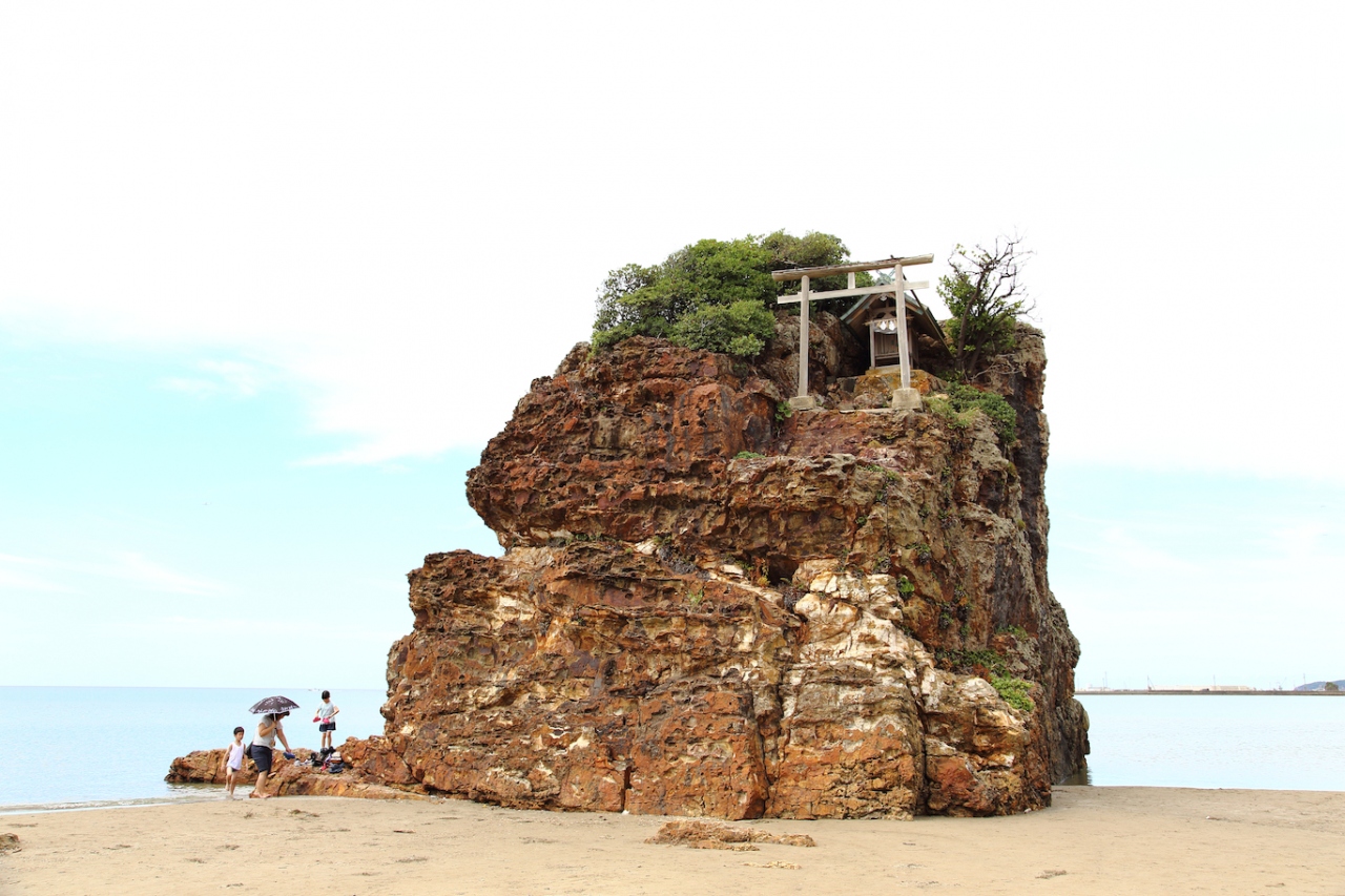 砂浜自体はそれほど広くはありません。また、護岸工事の関係でテトラポットが置かれていたりして、それほど景観もよくありません。こちらで目を引くのは弁天島でしょう。大きな岩の上に、小さいお社が祀られていて、ここが神話の舞台だったことを確認させてくれます。ただ、海水浴を楽しみたい、神話の舞台を巡りたい、という方以外にはお勧めしません。- 旅行時期