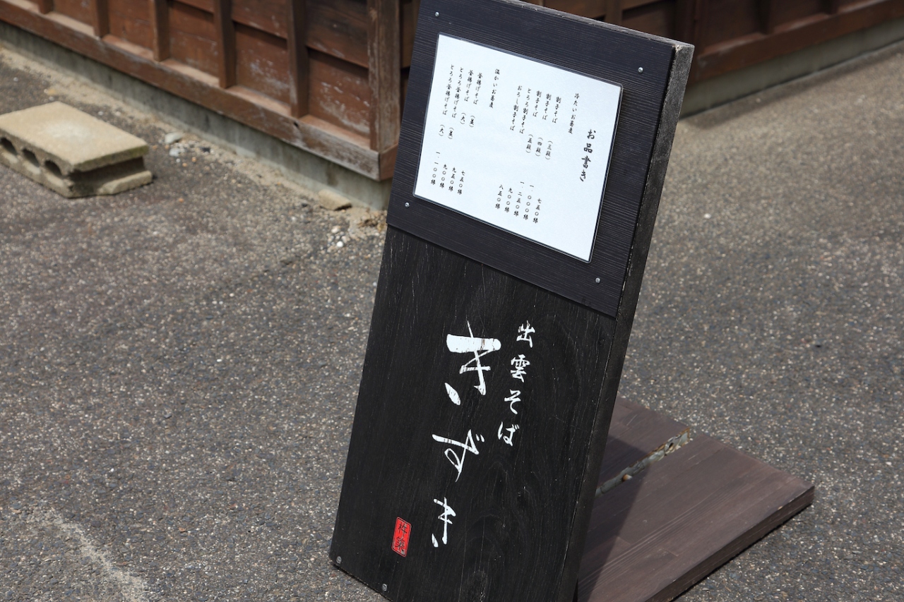 出雲蕎麦のお店です。あまり有名な店では無いようですが、地元の方から美味しいと聞いて行ってみました。実際、早めに行ったので待たずに入れましたが、食べ終わって出てきたときには行列が出来ていました。地元の方の間では有名なお店なんだと思います。場所は勢溜の西になります。勢溜からレストラン神宴の路地に入り、歩いて5分と掛からない場所にあります。同じ道を真っ直ぐ進むと有名な荒木屋さんがありますので、そちらを目印にしても良いかもしれません。お店自体は民家を改造したもので、ちょっと見には蕎麦屋には見えません。一応、お品書きが書かれた黒い看板が道沿いにありますので、そちらを目印にすると良いかと。ただ、行列が出来ているでしょうから、それで判るかも知れませんが。