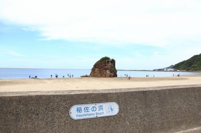 島根半島西側にある海岸です。出雲大社の西側、と言った方が判り易いかな。勢溜の目の前の道(国道431号)を西に真っ直ぐ道なりに進んで行けば、稲佐の浜に出られます。ただ、歩いていくと結構時間が掛かるので、面倒ならバスを使うことをお勧めします。勢溜のバス停から日御碕方面のバスに乗り、稲佐の浜バス停で降りればOKです。