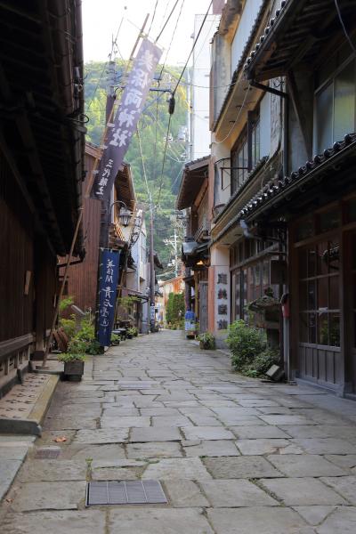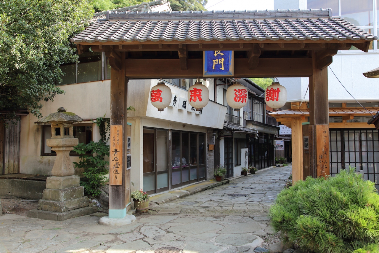 美保神社の門前から佛谷寺までを結んでいる短い通りです。北前船全盛の時代、松江から美保関までの街道が整備され、この辺りは宿場町として賑わったそうです。この通りはその頃に作られたものだそうです。因みに、名前の由来は雨が降ると石畳が青く見えるから、という理由だそうです。
