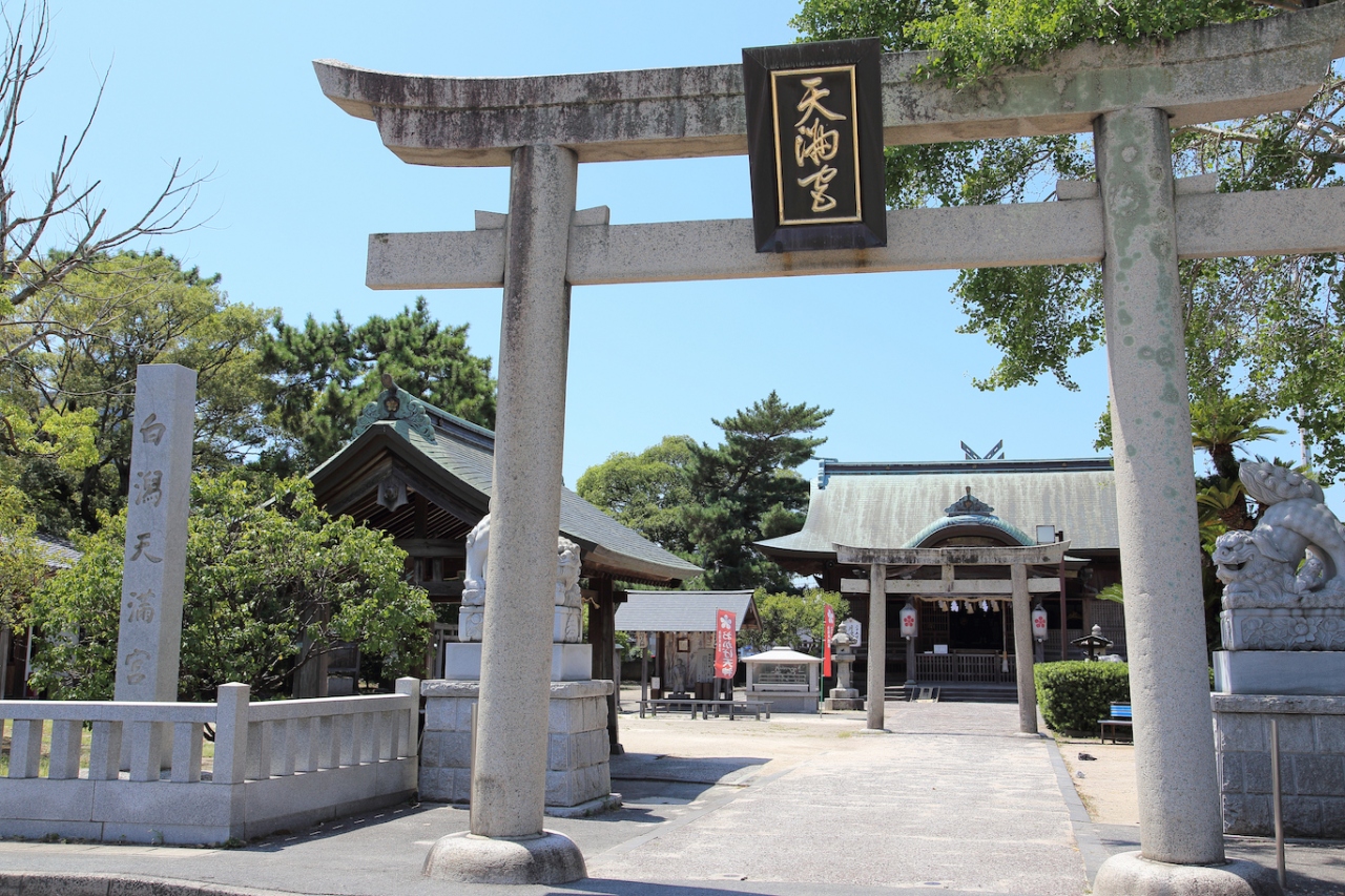 見た目は町中にある普通の神社です。また、当然祭神は菅原道真公なので、学問の神様として信仰されているようです。ただ、出雲にある神社らしく、本殿は大社造りの立派なものです。また、境内に建つ摂社や末社にも立派な千木が取り付けられていて、やはり出雲という土地柄、神社建築は立派なんだな、と妙に感心してしまいました。