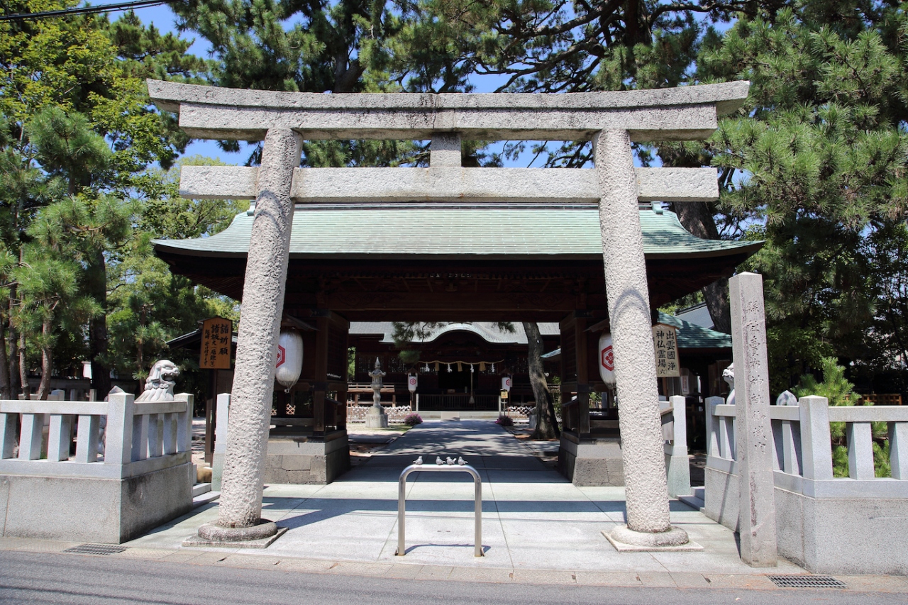 松江の商店街の外れにある神社です。松江駅北口を出て宍道湖方面に向かい、朝日町交差点を北に進むとあります。