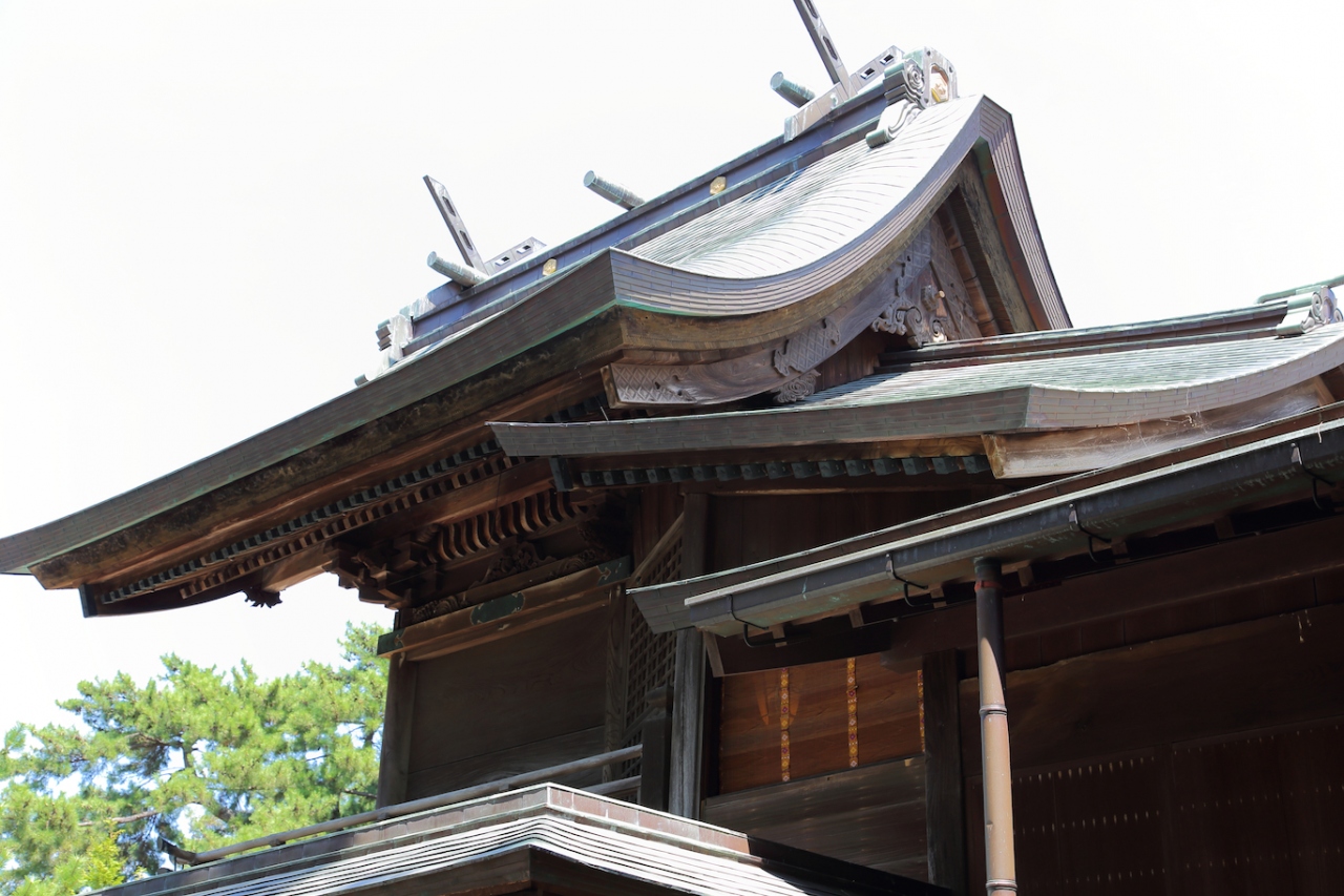 こちらの造りは面白くて、本殿が2つある構造になっています。美保造という構造らしく、内部は繋がっているらしいですが、他にこのような神社を見たことがありません。国の重要文化財に指定されています。本殿は江戸後期、拝殿は昭和期の建築なのですが、古代から続く風格のようなものを感じさせます。また、海が近いこともあるのでしょうが、心地良い風が吹き抜けていて、物凄く居心地の良い場所でした。