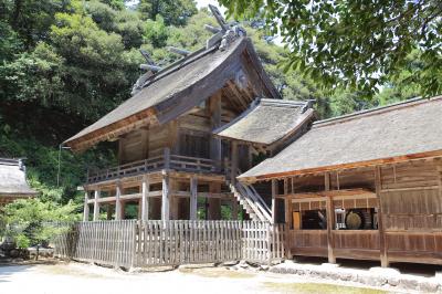 こちらは現存する大社造の神社の中で最も古く、国宝に指定されています。社殿は室町時代に建てられてたものだそうです。創建も神話時代に遡り、天照大皇神の息子である天穂日命が創建したと伝えられているようです。実際の創建は平安時代のようですが、それでも十分に古い神社です。天穂日命の子孫とされる出雲国造家の私的な霊場として利用されていたようです。