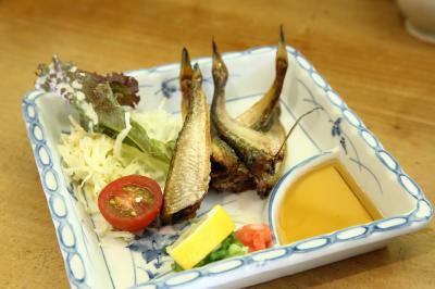 ランチに訪れましたが、ランチタイムは幾つかのランチメニューから選べるようになっていて、刺身、煮魚、揚げ物の定食から選べるようになっています。料金を追加すれば、おかずのみ追加することも出来ます。私は刺身定食とハタハタの揚げ物を頼みました。刺身の魚の詳しい種類は判りませんが、日本海が目の前にあるだけあって、とても新鮮で美味しかったです。ハタハタの揚げ物も初めて食べましたが、身がプリプリしていて非常に美味しかったです。ランチの時間帯はご飯がお代わり自由ですし、小鉢や蜆汁がついて、\1,000しませんでした。店員さんも皆親切で、色々と気さくに話しかけてくれ、居心地も良かったです。
