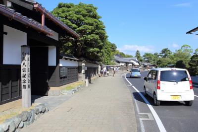 この塩見縄手は明々庵から小泉八雲旧居の辺りまでですから、それほど距離はありません。500mあるかどうかでしょう。通りは一方はお城の堀と松並木、一方は木と漆喰の壁が並んでおり、風情があります。通りを車がびゅんびゅん通るのでその点は興醒めですが、車さえなければ往時の雰囲気を醸し出しています。武家屋敷や小泉八雲に関連する施設が並んでいるので、一緒に観光するのが良いでしょう。そういったものに興味が無くても、是非散策してみることをお勧めします。- 旅行時期