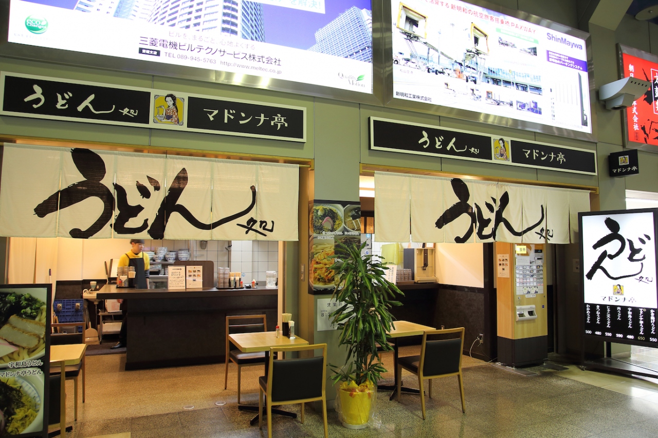 松山空港1階の土産物屋の一角にあるうどん屋さんです。松山空港自体が広い空港ではないので、直ぐに判ります。やはり空港の店なので、価格は少々割高です。じゃこ天うどんを頂きましたが、500円程度したと思います。味も、駅の立ち食いうどん屋さんと変わらないレベルです。ただ、短時間で提供してくれますので、チェックインから搭乗までに時間が無いが、何か腹に入れておきたい、というときには重宝すると思います。