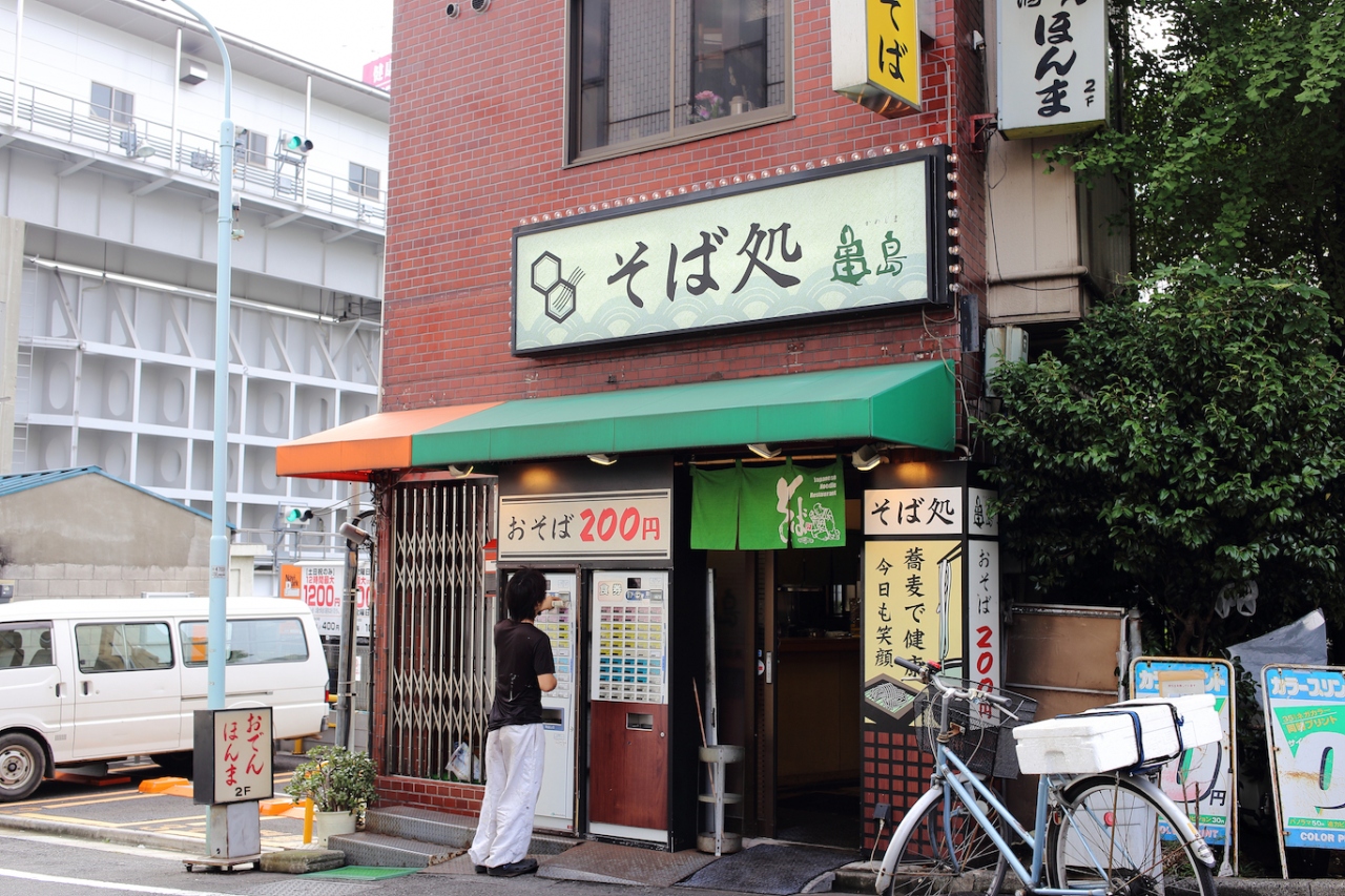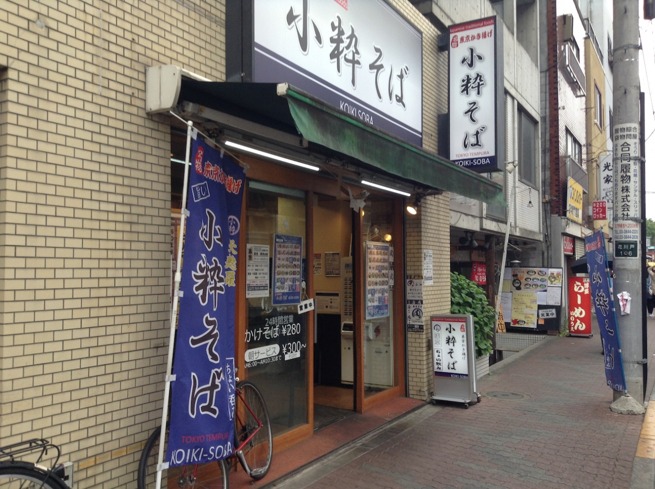 霊岸橋の袂にある立ち食いそば屋です。茅場町の4b出口から出ると看板が見えます。