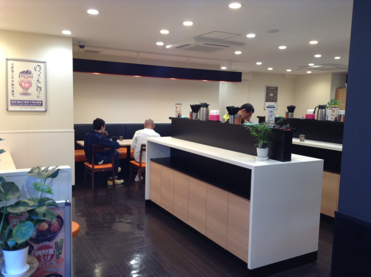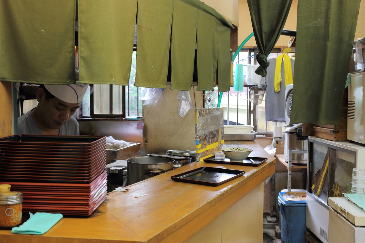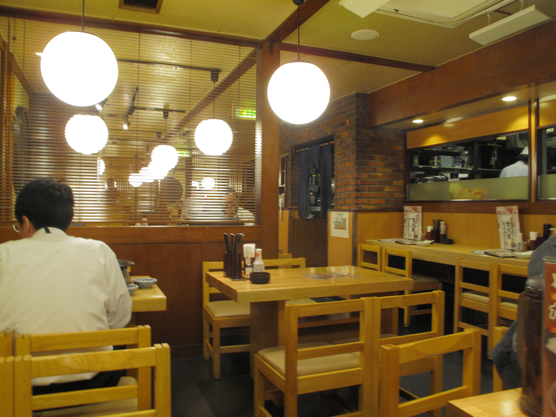 店内にはカウンター席の他、4人掛けのテーブルがあります。最近は良く外国の方が食べているのを見るんですが、こんな店まで紹介されているのかな、とビックリしています。
