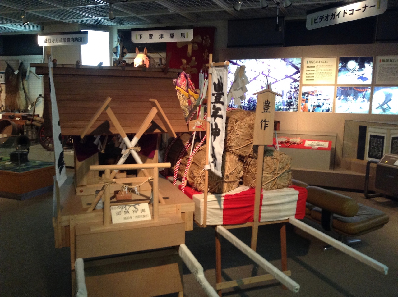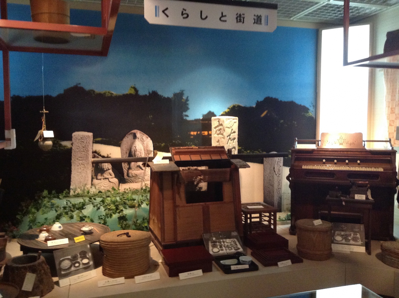 内容は甚目寺観音の展示がメインになっています。室町期の甚目寺のジオラマや、甚目寺の寺伝、重文である不動明王像や涅槃図が展示されていて、結構見応えがあります。その他は縄文期のあま市の様子や、あま市の伝統行事の展示、生活に利用されていた道具等、民俗的な資料が多く展示されています。展示スペースは結構広く、多くの展示物が所狭しと並べられています。ケチ臭いところなら普通に見学料金を取っていても不思議でないレベルです。これが無料で見られるのですから太っ腹です。