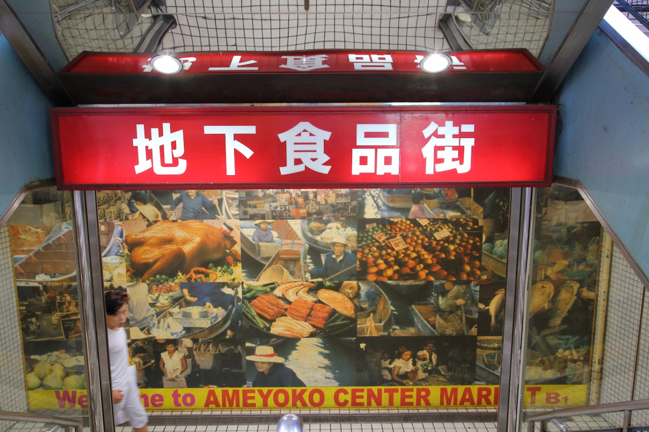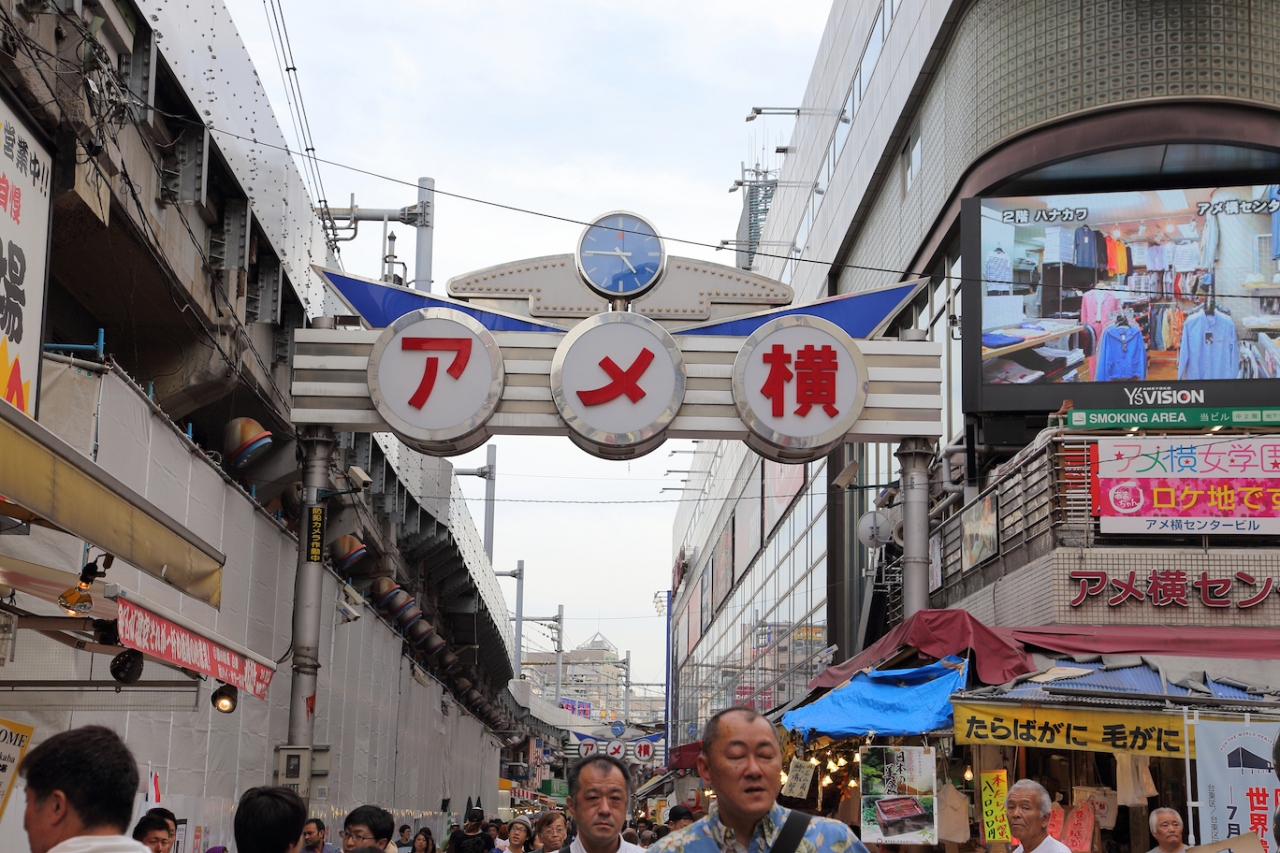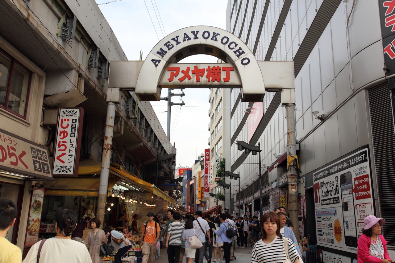 上野駅正面のヨドバシカメラ脇から、御徒町駅までJR山手線の高架を挟む形で続く商店街です。年末に混み合う様子がテレビやラジオで放送されますから、誰でも知っている商店街でしょう。商店街の名前は諸説あるようで、米軍の横流し品を扱っていたから、とか、芋アメの問屋が多く居たから、とか色々あるようです。