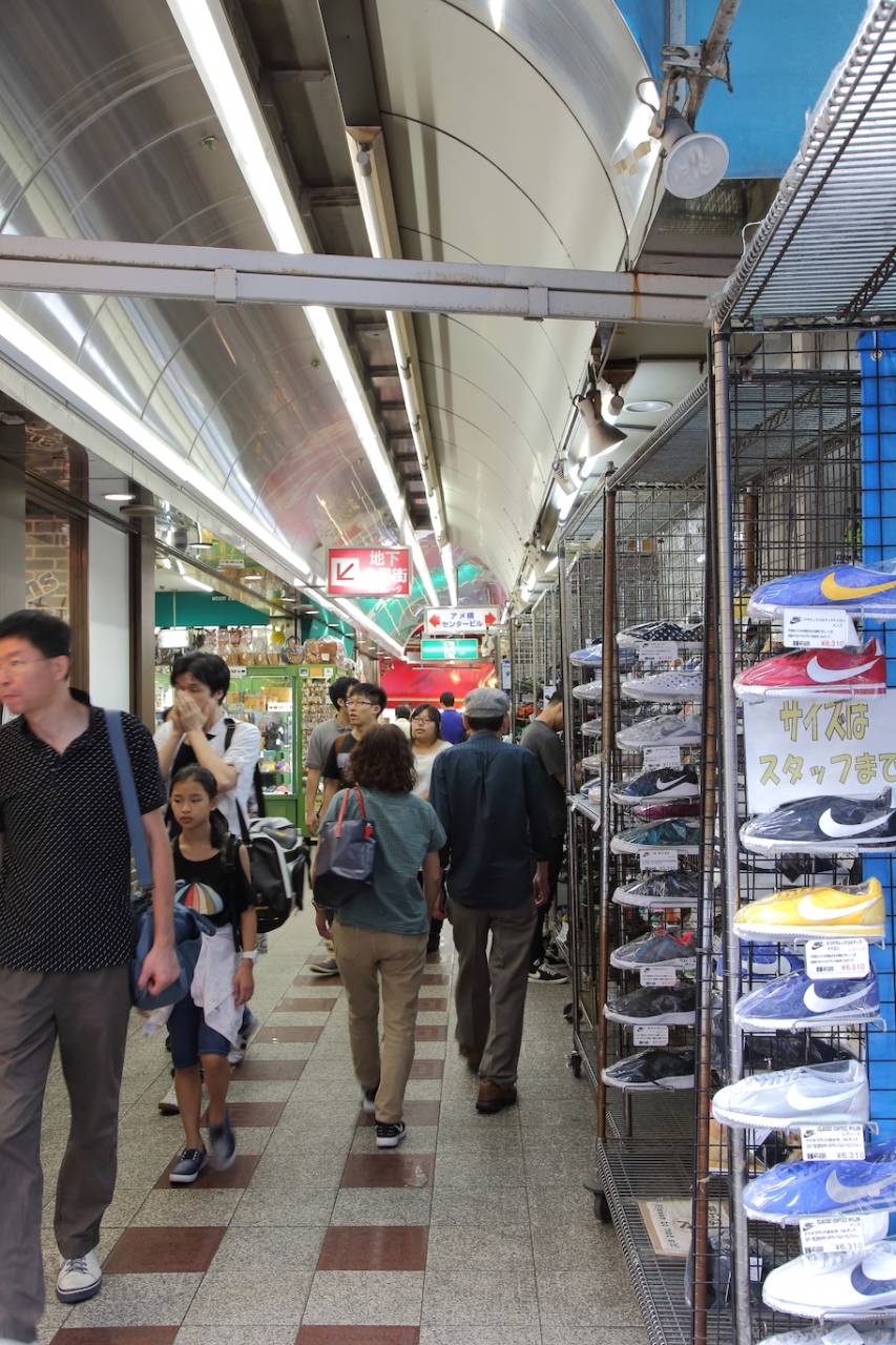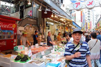 こちらの商店街で扱っているものは種々雑多で、生鮮食品やお菓子、服飾品、靴、化粧品、時計、貴金属と何でもござれです。飲食店も多く集まっています。ただ、残念なことに生鮮品は質が良くないものもあります。特に、マグロなどは築地と比べてしまうとかなり劣ってしまいますね。叩き売りをしているようなのは大抵そうです。ですが、ここでそれを言ってしまってはヤボな気がします。ここは、それを承知の上で、河岸声の親父さんとの掛け合いを楽しみながら買い物をする場所だと思います。良い物を買おうとするのではなく、戦後の闇市を引きずっているような、そういう雰囲気を楽しむ場所だと思います。- 旅行時期