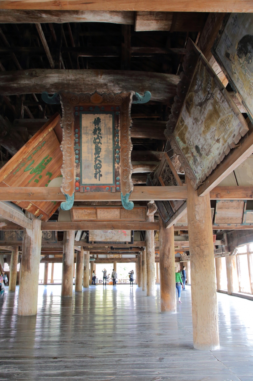 こちらの別名は千畳閣ですが、畳を敷くと800畳以上になることから呼ばれたようです。中に入ると判りますが、確かに物凄く広大です。また、時の権力者が建てただけあって、木材も非常に立派なものが使われています。完成していたら京都・奈良の古刹に匹敵するような大伽藍になったのだろうな、と思いました。