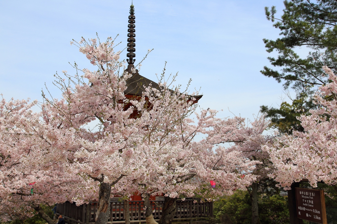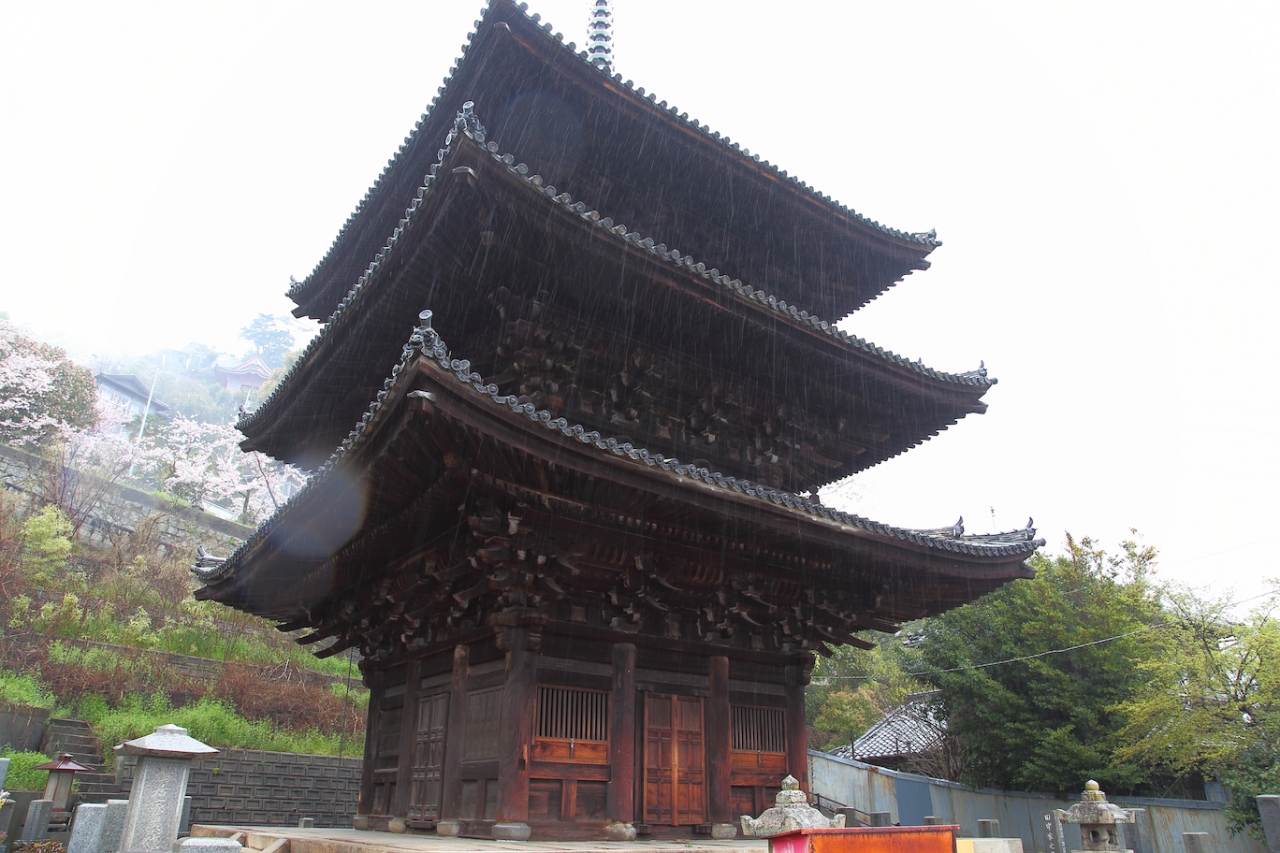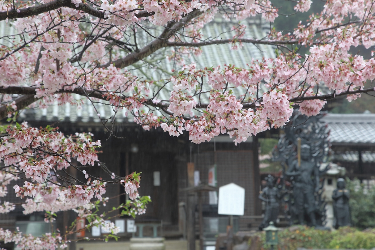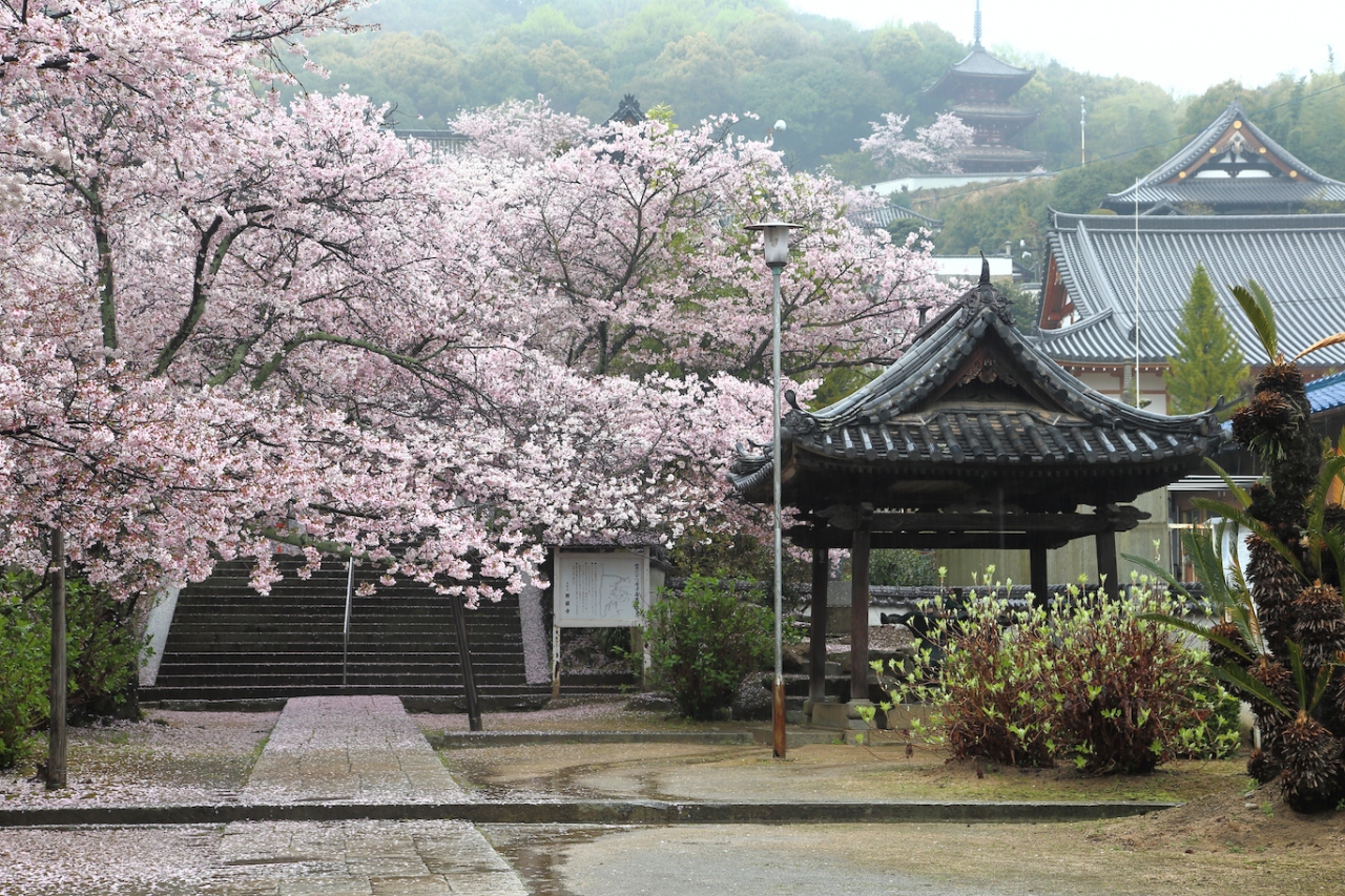 こちらは桜の名所としても有名で、山門から金堂までの参道の両脇に桜が植えられています。桜が満開の時期には桜のトンネルを通って参拝できます。境内の一番奥に三重塔がありますが、満開の桜越しに見る三重塔の美しさは素晴らしいです。是非桜の時期に訪れてみてください。- 旅行時期