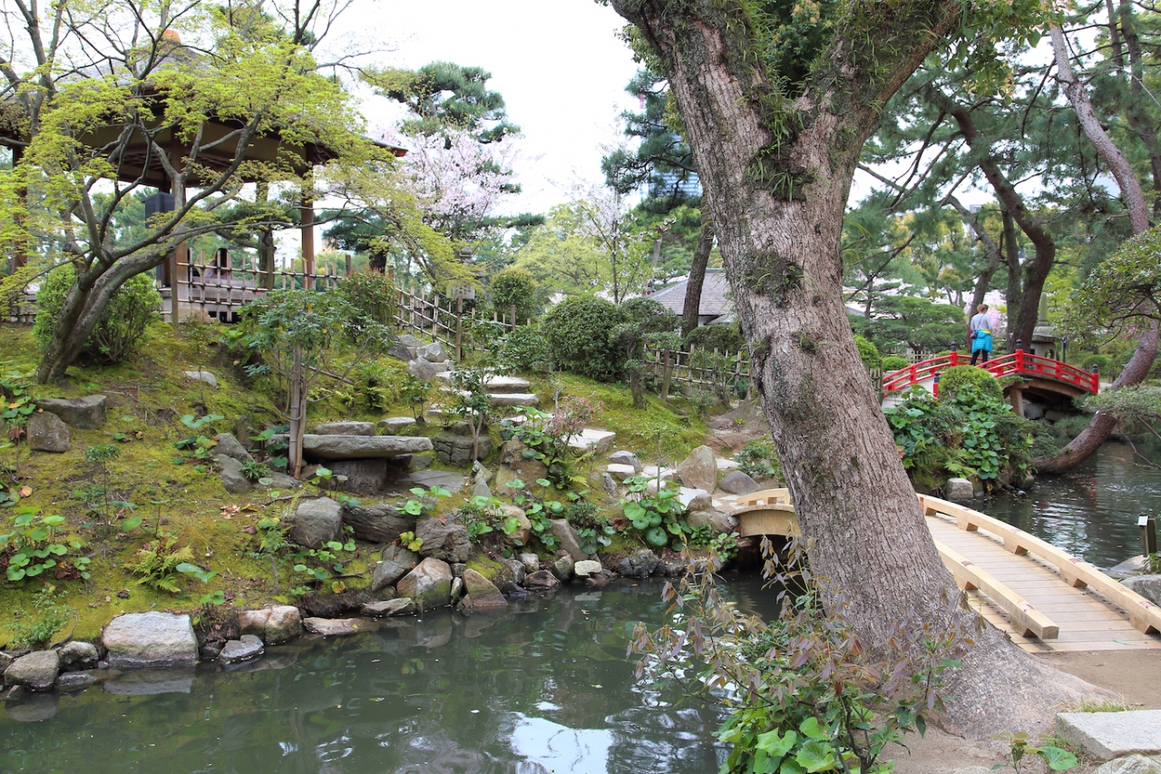 広島市内にある大名庭園で、広島藩主浅野家が築いた庭園です。路面電車の縮景園前駅で降り、東に向かって100mも歩けは着きます。