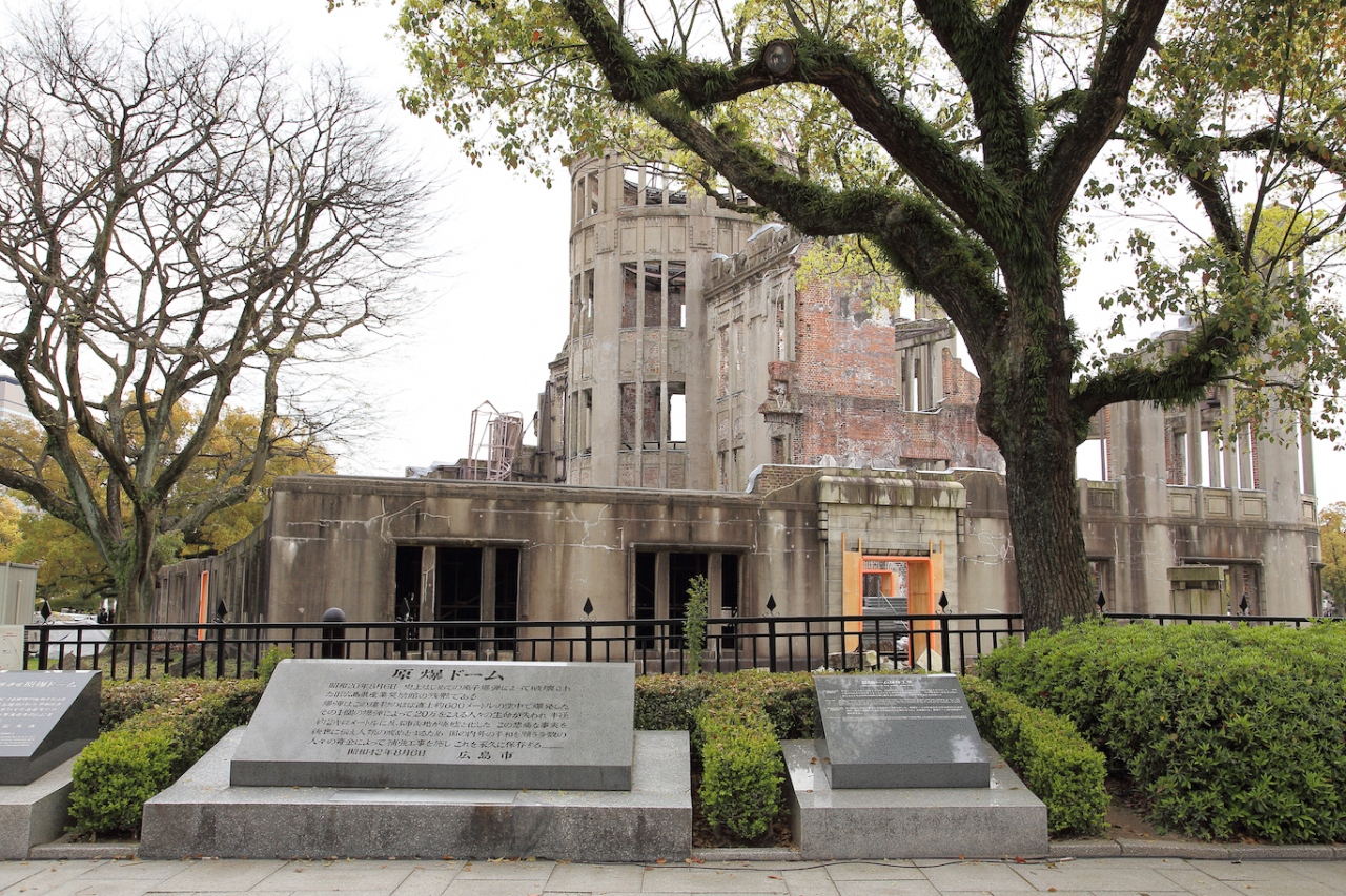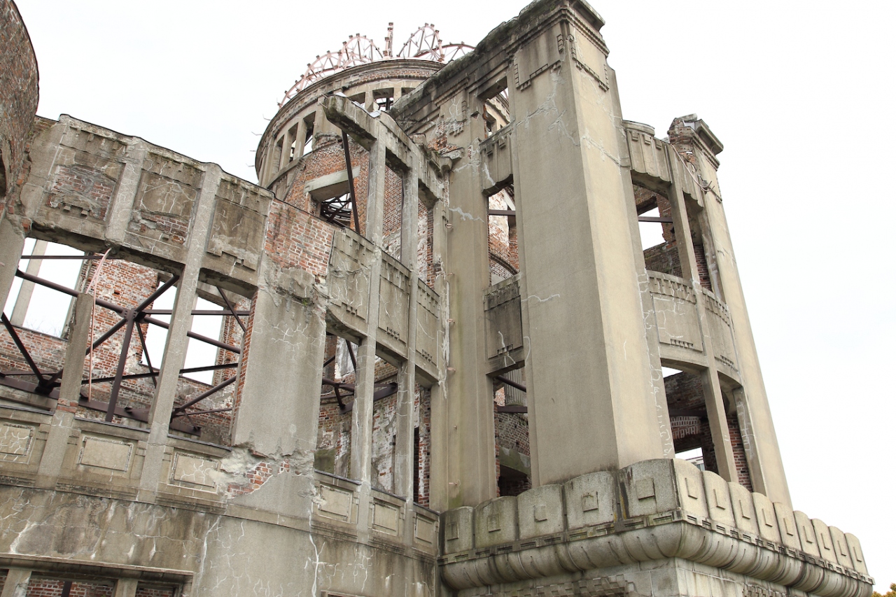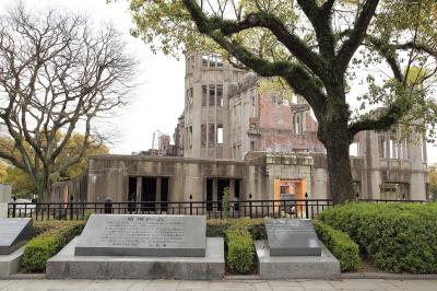 負の世界遺産として、Tripadvisorの日本で行きたい観光地の1、2位を争うほど有名な施設です。路面電車に『原爆ドーム前』という駅がありますから、そちらで降りてください。降りて南を向けば、直ぐに目に入ります。
