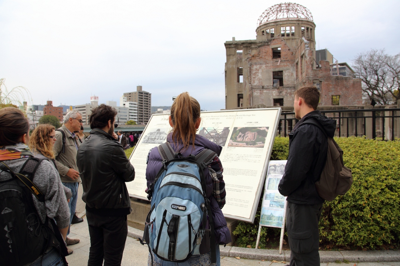 この施設がどんなものなのか、どういう意義があるのかについては今さら説明の必要は無いでしょう。ここに行ってどんなことを感じるかが重要なんだと思います。興味深いのは、外国人の方が熱心にガイドさんの説明を聞いたり、説明版を読んでいることですね。広島の方は日常になってしまっているのでしょうが、外国人の方にとっては物凄く衝撃を受ける建物なのでしょう。エルビス・コステロが原爆ドームの前で奥さんと抱き合って涙を流した、何ていうエピソードも残っています。
