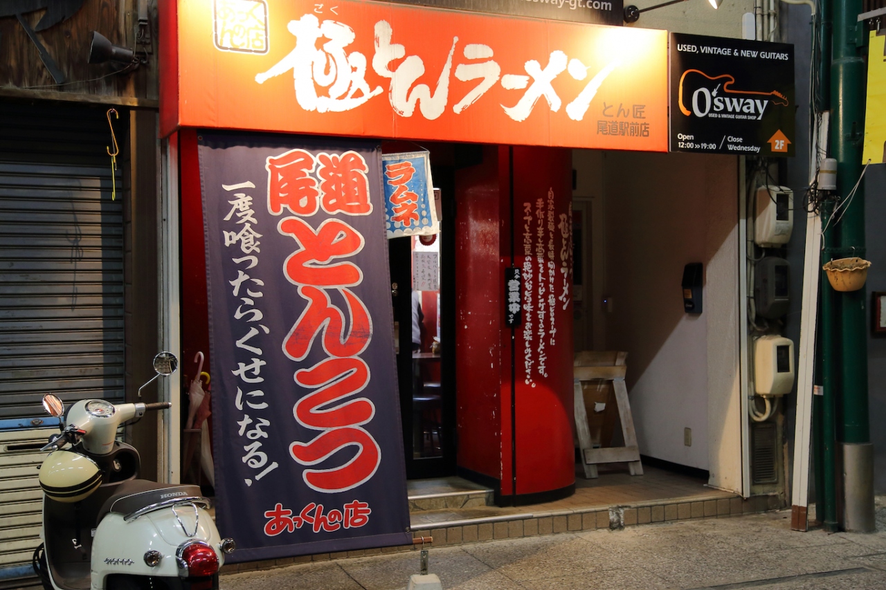 店内はカウンターとテーブル席があったと記憶しています。メニューはとんこつがメインで、麺の固さが選べたり、替え玉があったりと、一般的なとんこつラーメン店と変わりません。味自体は飛びぬけて美味しいわけではありませんが、普通に安心して食べられるとんこつラーメンでした。夜遅くに尾道で食事を取りたい場合や、尾道ラーメンに飽きたので目先を変えたい、という場合にどうぞ。- 旅行時期