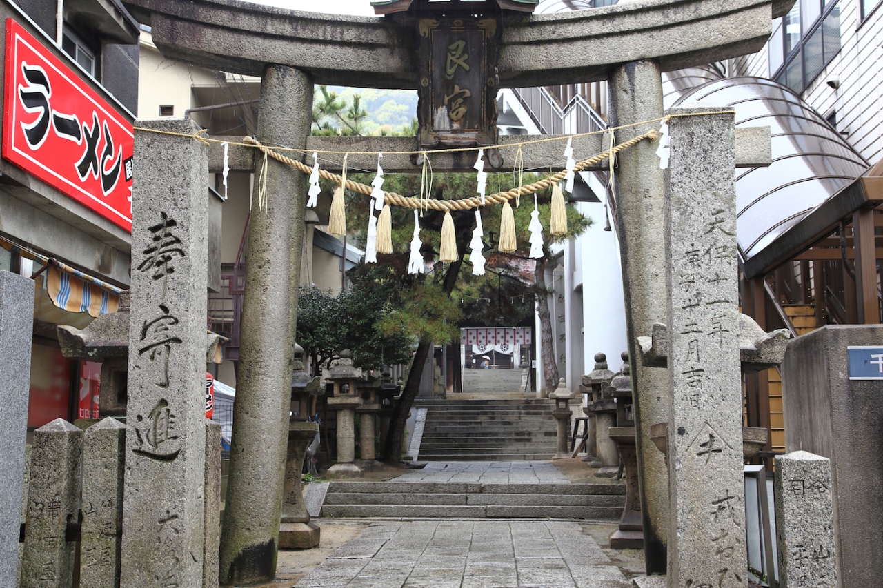 尾道で一番古いと言われる神社で、806年の創建とのことです。境内の大楠は樹齢800年以上とのことで、御神木として崇められています。拝殿も大きく立派なもので、流石に歴史のある神社なんだな、と思わせます。唯一疑問なのが、神社の名前です。艮ということは鬼門(北東)から怪異が入ってこないように作ったのだと思いますが、ここから南西方向に歴史的な建造物がありません。お寺は幾つかありますが、大体南北朝の頃の創建なので、この神社が作られた頃には無かった筈です。厳島神社のように、海の上に何かの御神体があったのでしょうか。謎です。