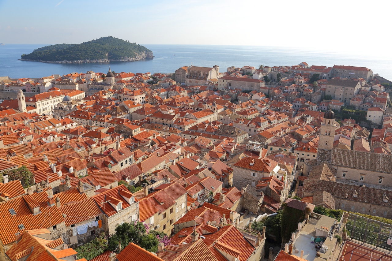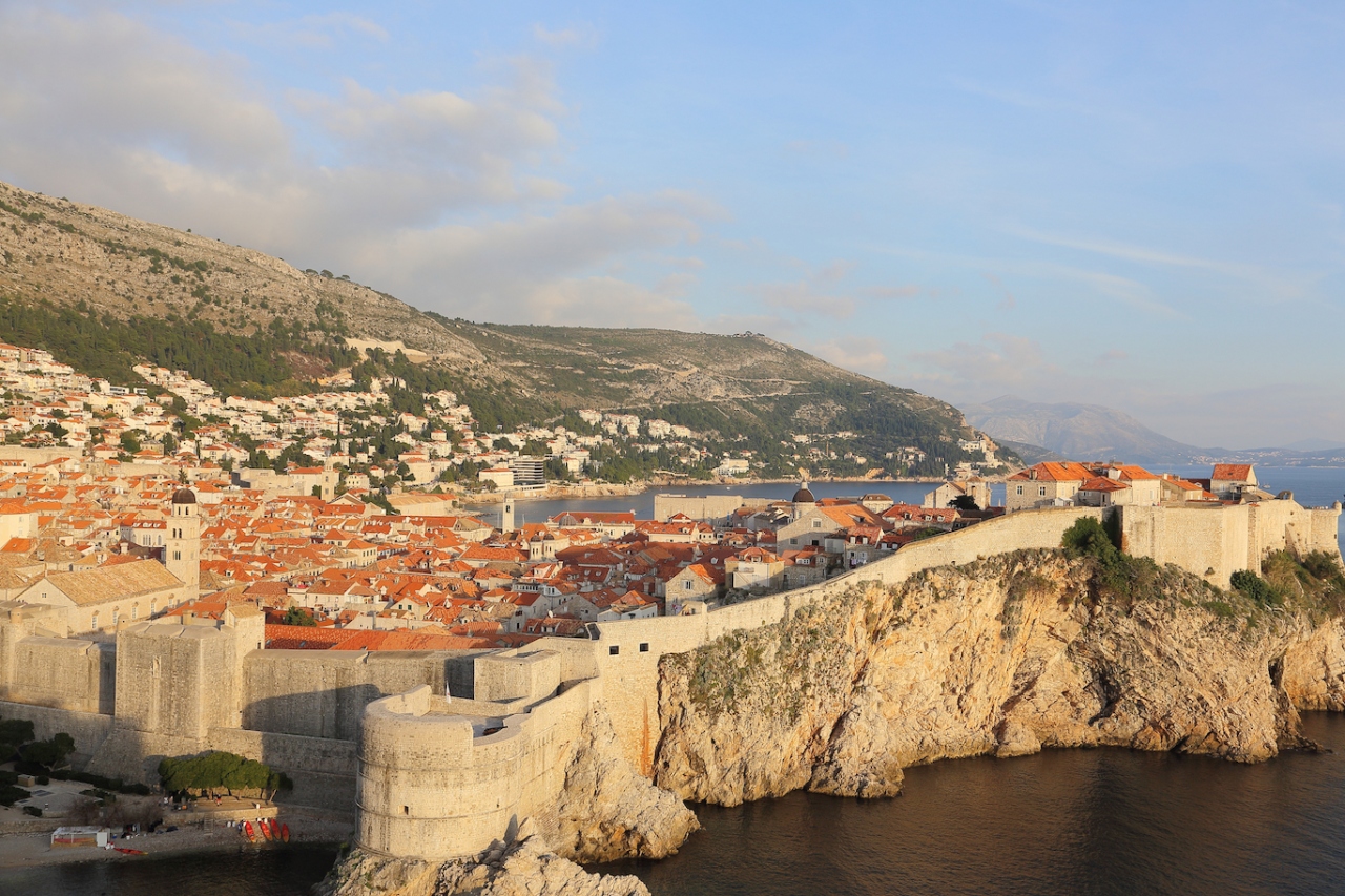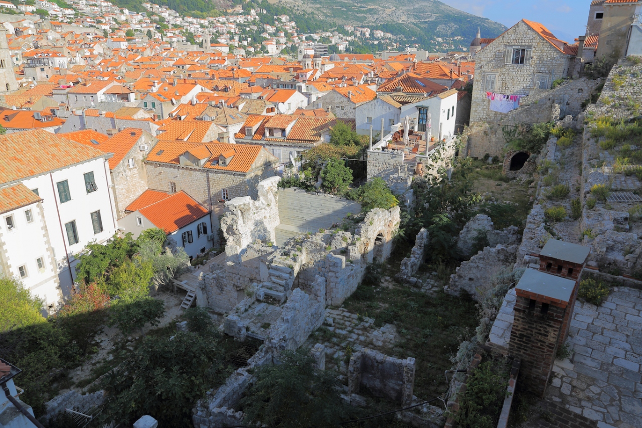 城壁に上ると旧市街が一望できるだけでなく、なかなか旧市街を歩いているだけでは見られない光景が見られます。岸壁のカフェで寛ぐ方や、カヌーツアーでアドリア海を漕いで行く方、内戦で破壊されたのかも知れない建物と修復している方、旧市街に住む方々の生活など…。単に旧市街の綺麗な眺めを見るのも良いですが、そういうものを見ると、より一層旅が面白くなりますし、旅の幅が広がると思います。その点で、城壁めぐりはお勧めです。なお、城壁の途中途中にカフェがありますので、疲れたら無理せずに一服することをお勧めします。- 旅行時期