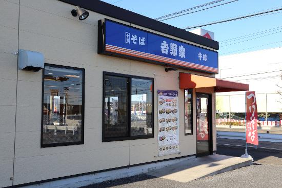 伊勢崎の宮子町にある吉野家です。この辺りは駒形バイパスに沿ってオートレース場や大型店舗、飲食店が並んでいて賑やかですが、その一角にあります。隣がコメダ珈琲店、向かいにサイクルベースあさひがあるので、それを目印にすると探しやすいでしょう。