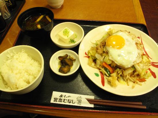 こちらの特徴はやよい軒と同じく、おかわり自由なことです。肉野菜炒めが好きなのでよく注文していますが、目玉焼きが乗っているのも高評価です。味は値段相応ですが、リーズナブルにお腹一杯食べられるので大変有難いお店です。- 旅行時期