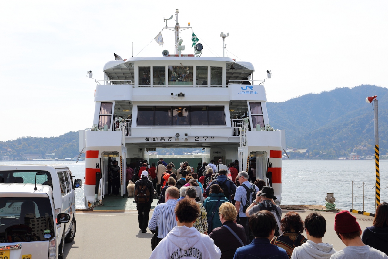 本州の宮島口と宮島を結ぶフェリーです。JR宮島口駅の改札を出れば、真正面に見えます。