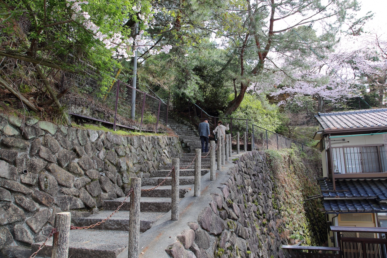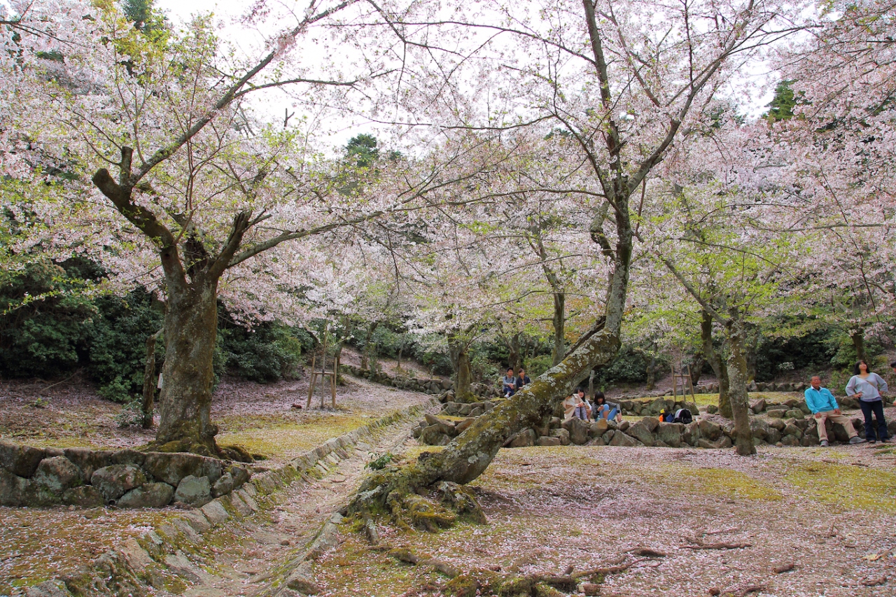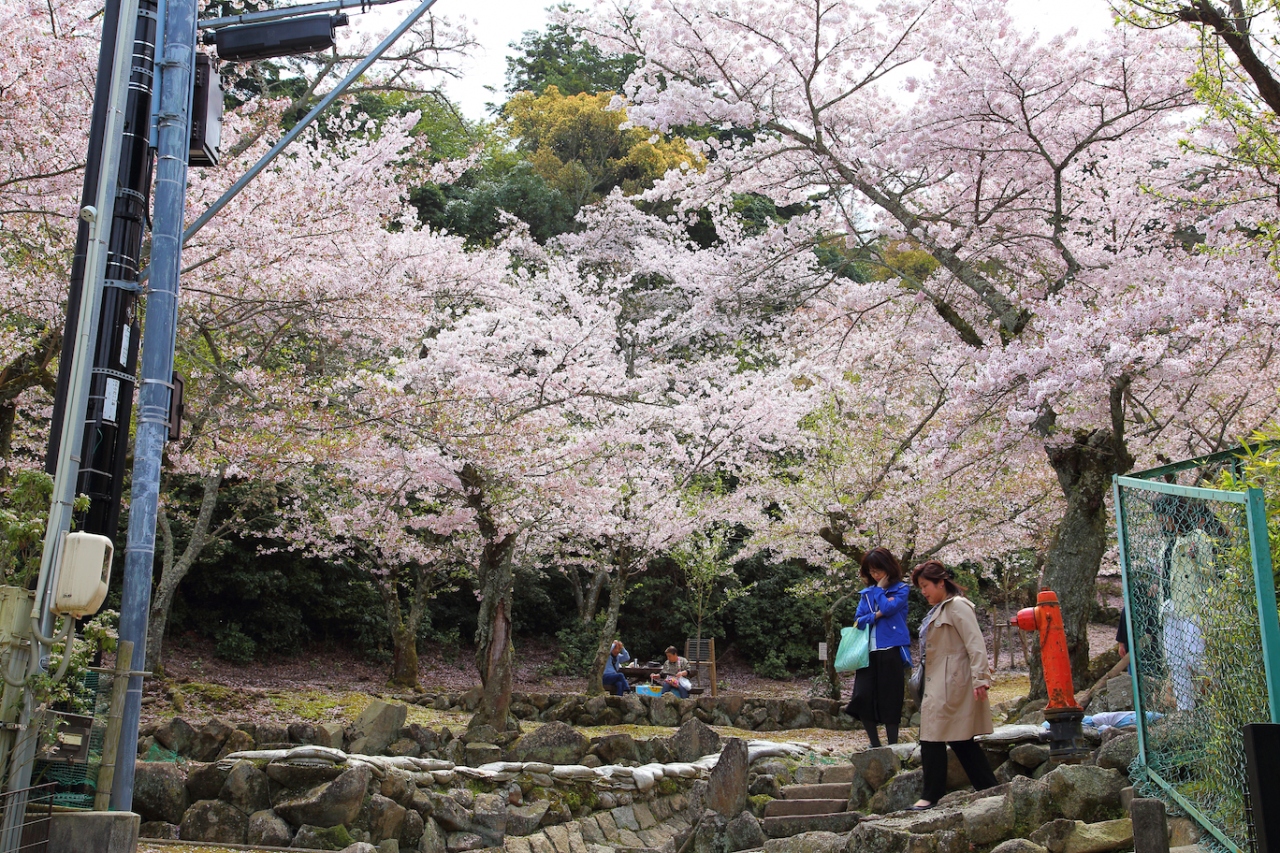 世界遺産の構成要素であり、平安の昔から信仰を集めてきた神の島でもあります。宮島といえば厳島神社のイメージが大きいと思いますが、こちらは桜の名所でもあります。恐らく、普通はフェリーを降りてから表参道商店街を歩き、御笠浜から厳島神社へ向い、厳島神社の参拝を終えたら五重塔や豊国神社を見物、もしくは弥山のロープウェーに乗って展望台に行ってからフェリー乗り場に戻る、というルートだと思います。これだと、あまり桜の名所、というイメージは沸かないでしょう。厳島神社を囲む桜程度しか見られませんから。