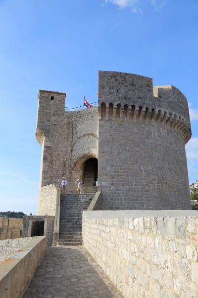 旧市街の西隣にある城砦です。城壁巡りの最中、ボカール砦の辺りから良く見えます。行き方はピレ門から旧市街を出て、アイスクリーム屋さんと観光案内所の間にある階段を下ります。そうすればあとは1本道です。要塞入口までは結構な階段がありますし、周囲が公園のようになっていて遊歩道もありますが、恐らく迷わないかと。