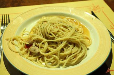 中は結構広くて、昼時は地元の人でごった返しています。ランチはプリモ、セコンド、水かワインが付いて10ユーロです。地元の人が詰め掛けるのが良くわかります。ランチメニューは日替わりで、プリモとセコンドがそれぞれ4~5種類ありますので、その中から選びます。手書きのメニューを渡されますが、メニューはイタリア語のみなので、読めない場合は店員さんに聞くか、スマートフォンで画像検索しましょう。店員さんは英語が通じますよ。