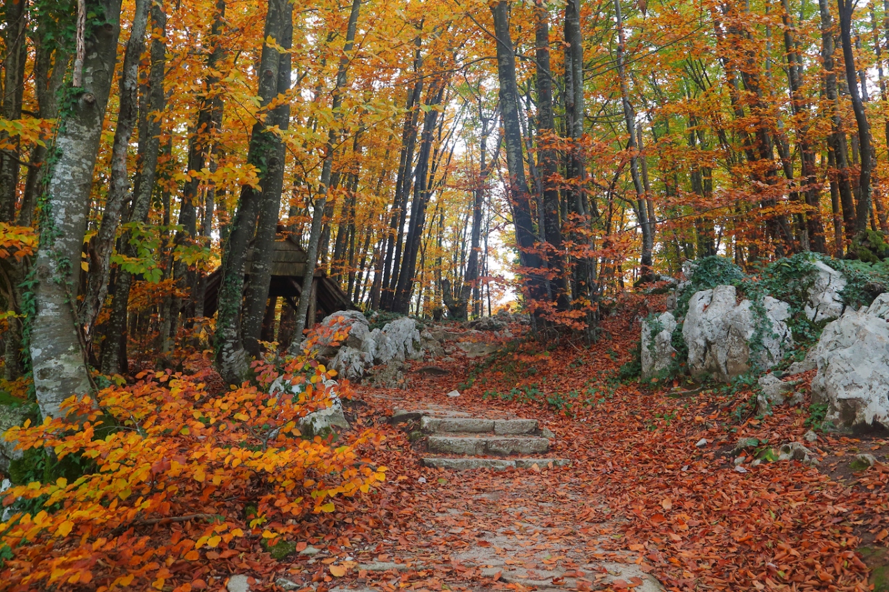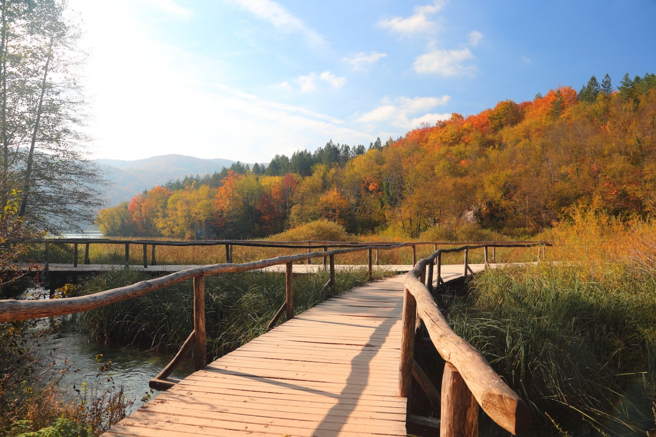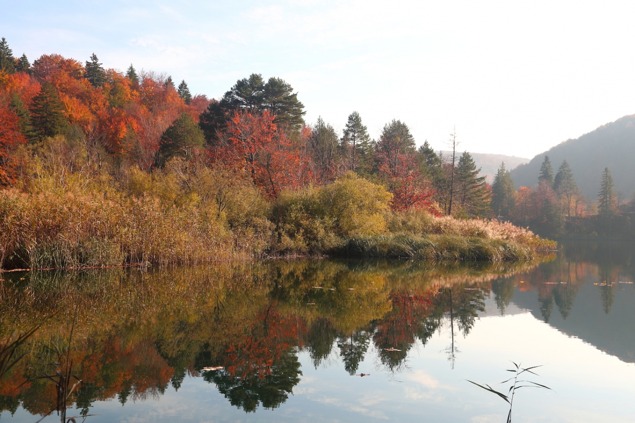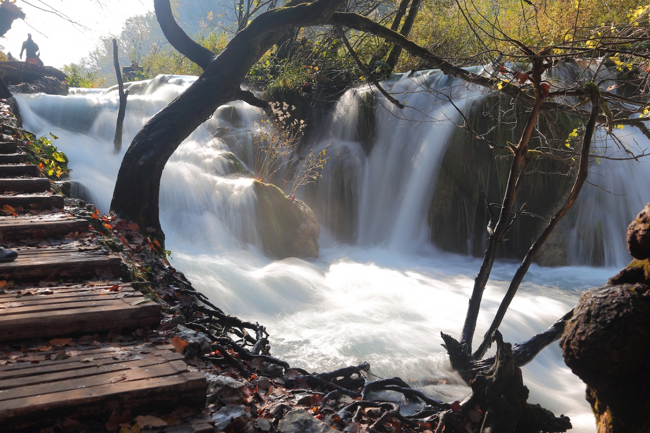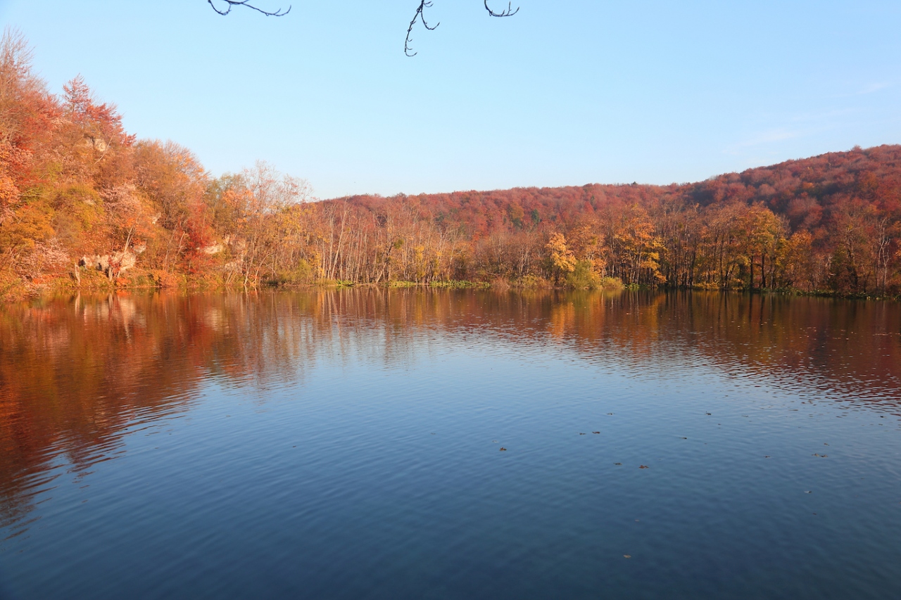 ガイドブックやパンフレットで使われている写真は、下湖群のものが多いです。園内最大の滝であるヴェリキ・スラップも下湖にありますし、カルジェロヴァツ湖とカヴァノヴァツ湖の間の遊歩道も下湖です。ガイドブックに乗っている光景が見られる展望スペースも下湖にあります。ですので、景観は素晴らしい場所が多いのですが、紅葉はあまり楽しめません。ただ、時間が無い場合は下湖群だけを見て周っても十分に楽しめると思います。1つだけ注意事項としては、景観が良いということは、それだけアップダウンが多いという事です。実際、展望スペースに行く時や、遊歩道を見下ろす場所に出るときには階段や洞窟の中を上っていくことになります。手摺りが着いている場所もありますが、結構自己責任、と描いてあるところも多いです。注意してください。- 旅行時期