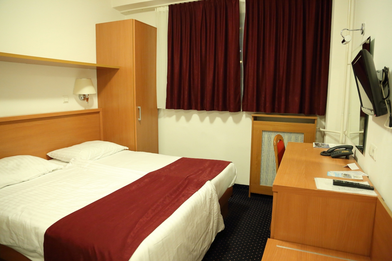 私が宿泊したのは10月末だったからかも知れませんが、1泊朝食つきで5,000円しなかったので、価格もリーズナブルでした。部屋の設備は日本のビジネスホテルと大差ありませんが、清潔でしたし、部屋も広々としていて気持ちよく過ごせました。海に面しているので、シービューの部屋をリクエストすればアドリア海の眺めを満喫できます。フロントの方も親切で、展望スポットへの行き方や、バスターミナルからの空港シャトルバスの時間も調べてくれました。