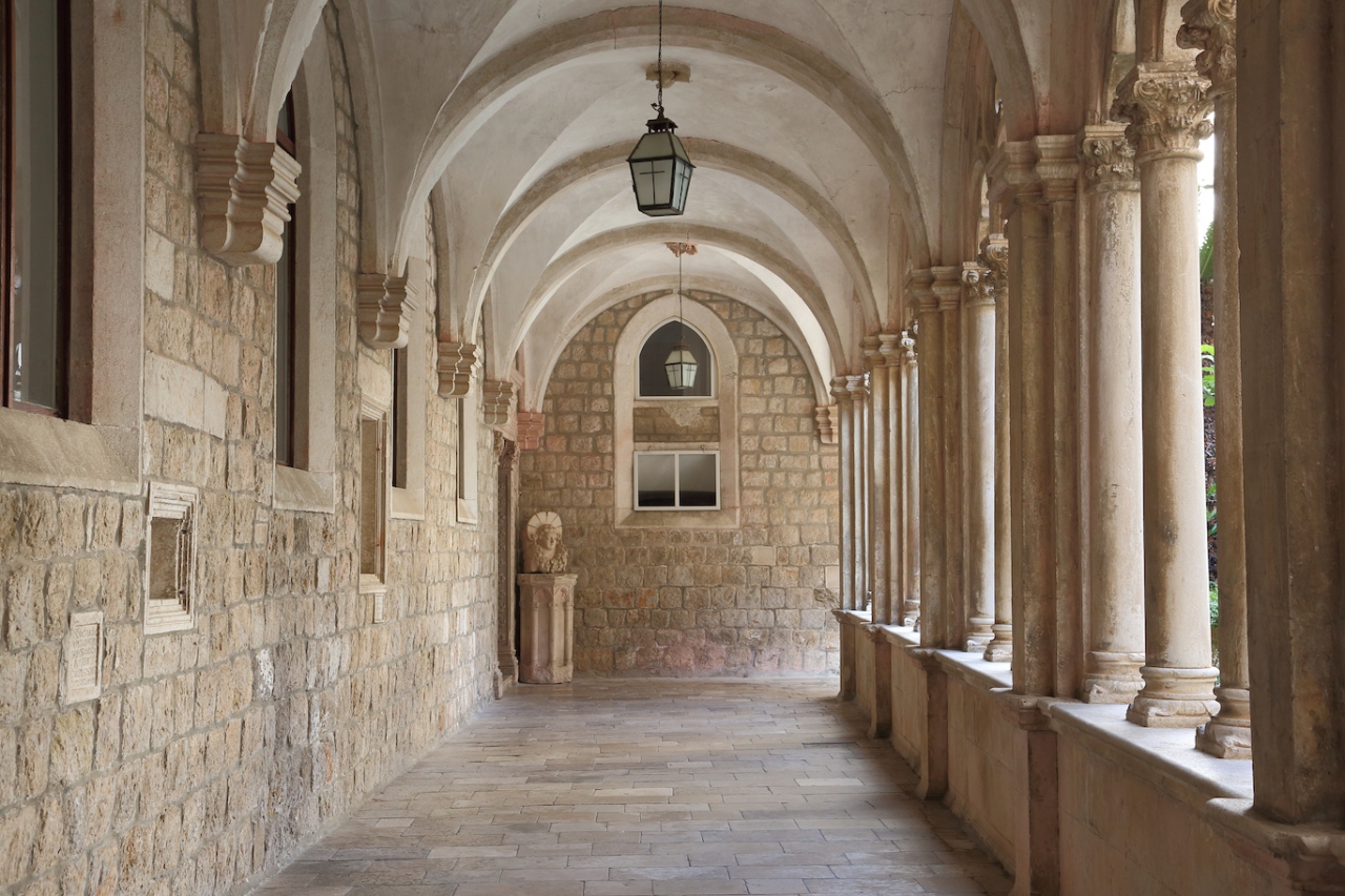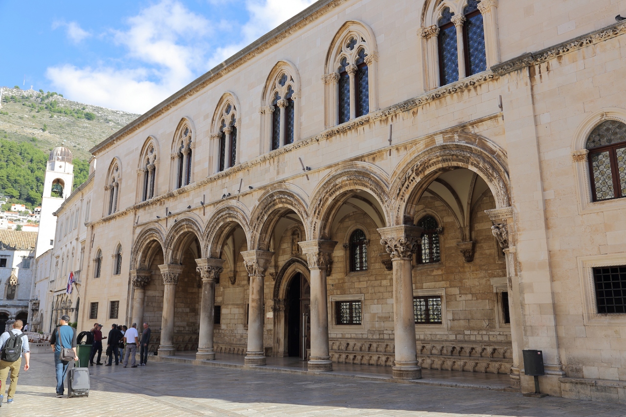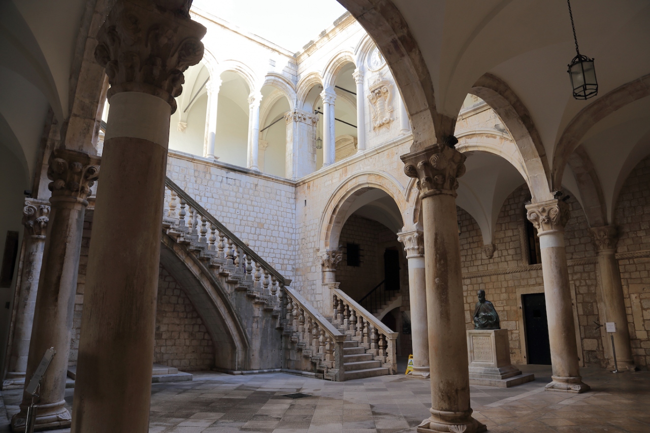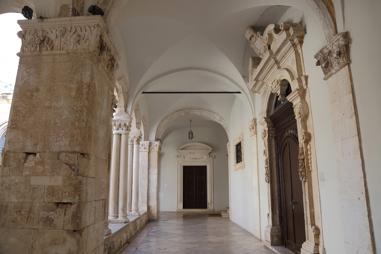 ルジャ広場の南東、聖母被昇天大聖堂の北側に位置する建物です。聖ヴラホ教会の脇から南を見れば、ゴシック様式のアーチが目立つ建物があります。そちらが総督邸です。内部はクロアチアの歴史博物館として公開されています。残念ながら、展示品の写真撮影は禁止されているので、中庭くらいしか撮れませんでした。
