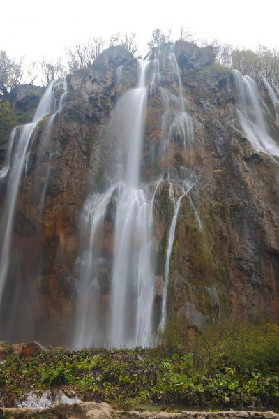 プリトヴィツェで一番大きな滝です。エントランス1から下湖にくだり、上湖方面に向わずに湖に沿って遊歩道を下っていくと、大きな広場のようなところに出ます。そちらにある大滝です。