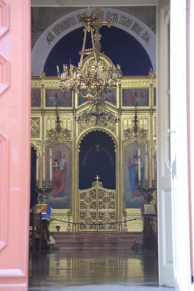 中はザグレブの正教会と同じで、彫像などは無く、天井、壁、祭壇一面が黄金色に塗られ、そこに沢山のイコンが飾られています。ただ、ザグレブよりも若干くすんだ様な印象を受けました。また、規模も小さいように感じました。正教会の教会は中々西ヨーロッパには少なく、見る機会はあまり無いと思います。時間が取れるなら是非見に行ってみて欲しい場所です。- 旅行時期