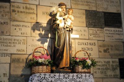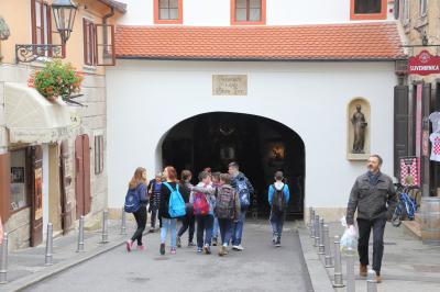 門とはいうものの、現在は門扉に当るようなものは見当たりません。あるのかも知れませんが、判りませんでした。中には焼け残った聖母子像が飾られ、聖職者のテラコッタ、長椅子があったりして、ちょっとした礼拝堂、といった雰囲気です。クロアチアは敬虔な方が多いのか、聖母子像の前で膝を折って十字を切ったり、長椅子に座って祈りを捧げている方が多かったです。観光地ではありますが、祈りを捧げている方の邪魔をしないよう、気をつけた方が良いでしょう。- 旅行時期