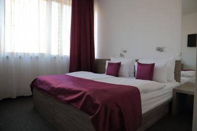 他のホテルと比べると中心部からは離れていますが、裏が病院で、同じ建物に24時間営業の薬局があって、隣の建物がHoferというスーパーなので、生活には物凄く便利なホテルです。中心部へ行くにはバスでも良いですし、ホテルから2~3分南(スーパーとは逆方向)へ行くとビツィケリュのターミナルがあるので、登録しておいて自転車を借りて移動しても良いと思います。私は実際に自転車で移動していました。価格も手頃ですし、駅からの移動もそれほど不便ではないので、お勧めのホテルです。- 旅行時期