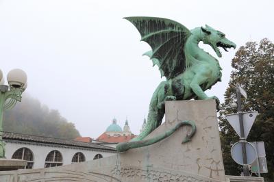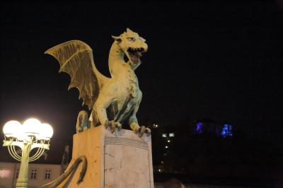 橋自体は特に何と言うことも無い、車も歩行者も自転車も渡る、ごく普通の橋です。ただ、橋の両端に竜の像が4体鎮座しているので、目立つと言えば目立ちますね。あと欄干にある街路灯にも竜が彫刻されています。夜はライトアップもされていますし、或る意味リュブリャナで一番有名な建築物と思いますので、リュブリャナのシンボルと言っても良いかもしれません。わざわざ見に行く価値があるかどうかは人それぞれだと思いますが、こちらからブラブラと散歩しながら、3本橋の方に向っていくのも面白いと思いますよ。- 旅行時期